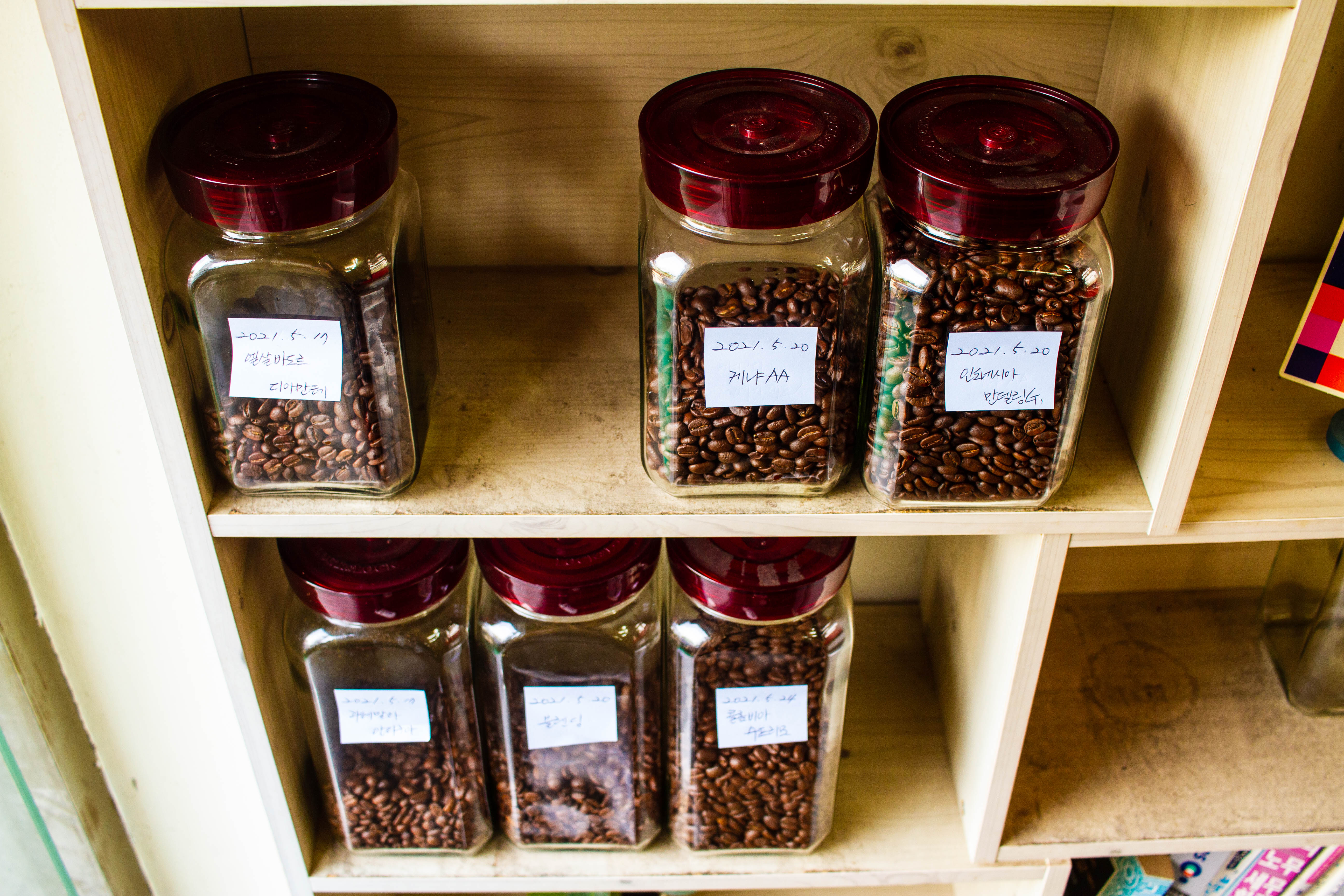 원두는 6가지 종류와 블랜딩이 하나 있습니다. 사실 제가 맛차이를 잘 몰라서... 제 느낌엔 콜롬비아 수프리모와 우유의 고소한 조합이 좋아서 지난주엔 그렇게 먹었습니다.