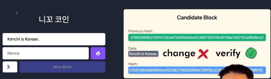 - 블록체인 = 데이터베이스. 데이터는 블록 + 해시로 연결
