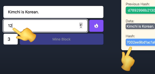 "채굴자님, nonce에 넣어야 하는 값은 무엇일까요? 참고로 그 해시는 3개의 0으로 시작해야합니다."