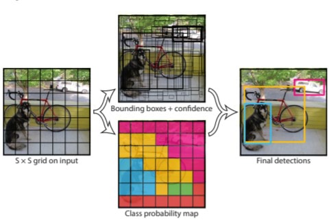 - 알고리즘을 딱 한번만 돌려야 YOLO의 성능이 나옴. Bounding box(위치)와 Class probabiliity(분류)를 할때 CNN이 사용됨