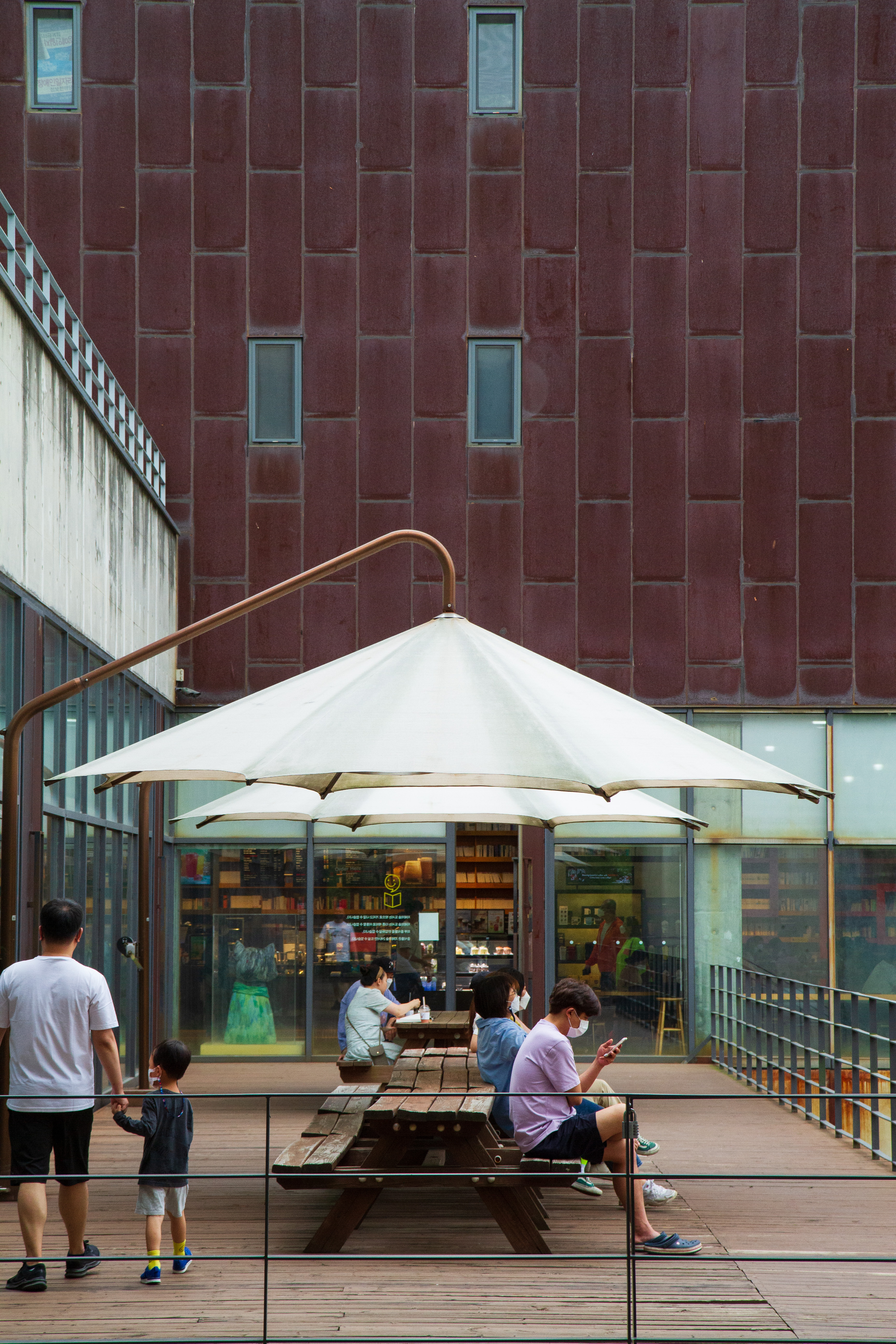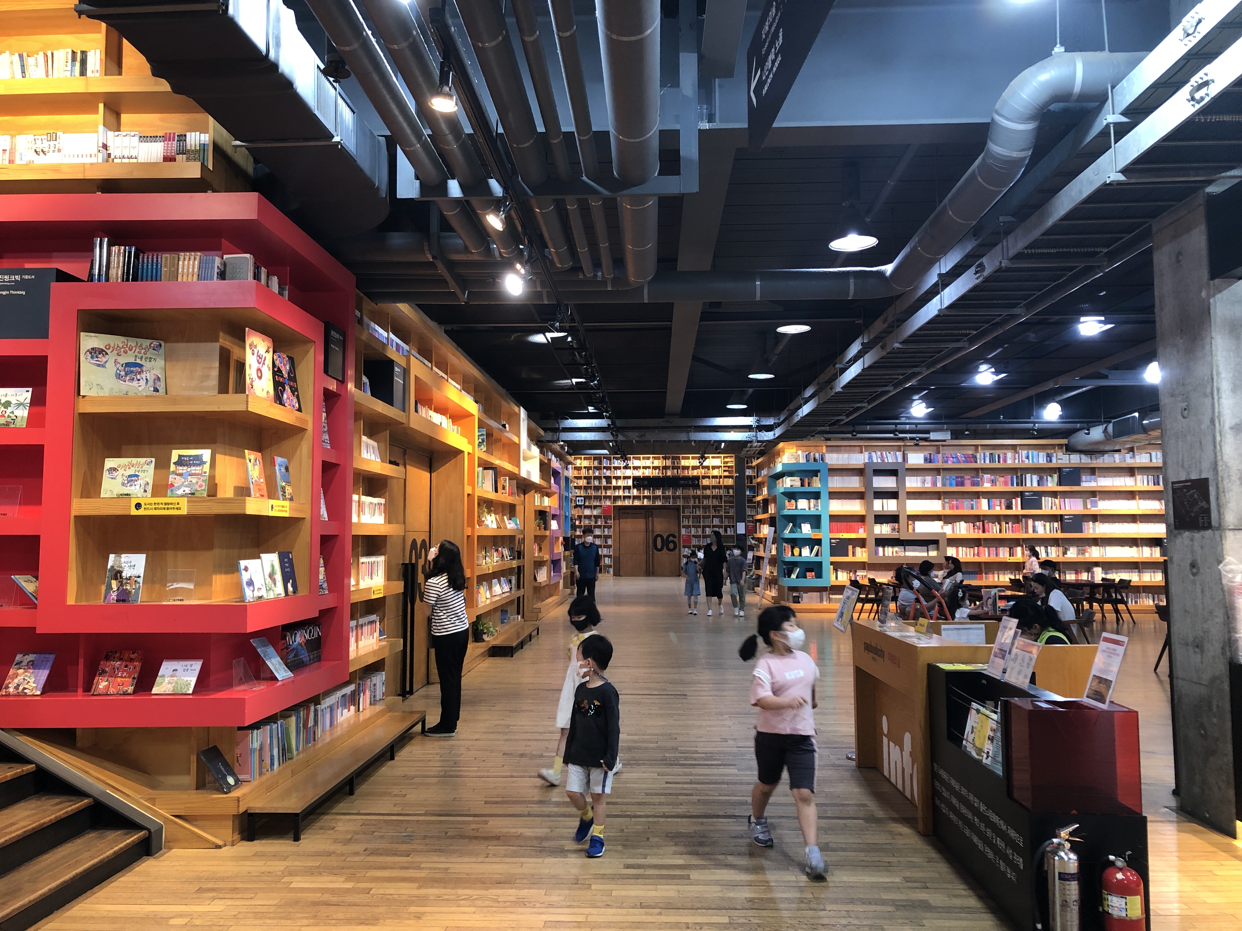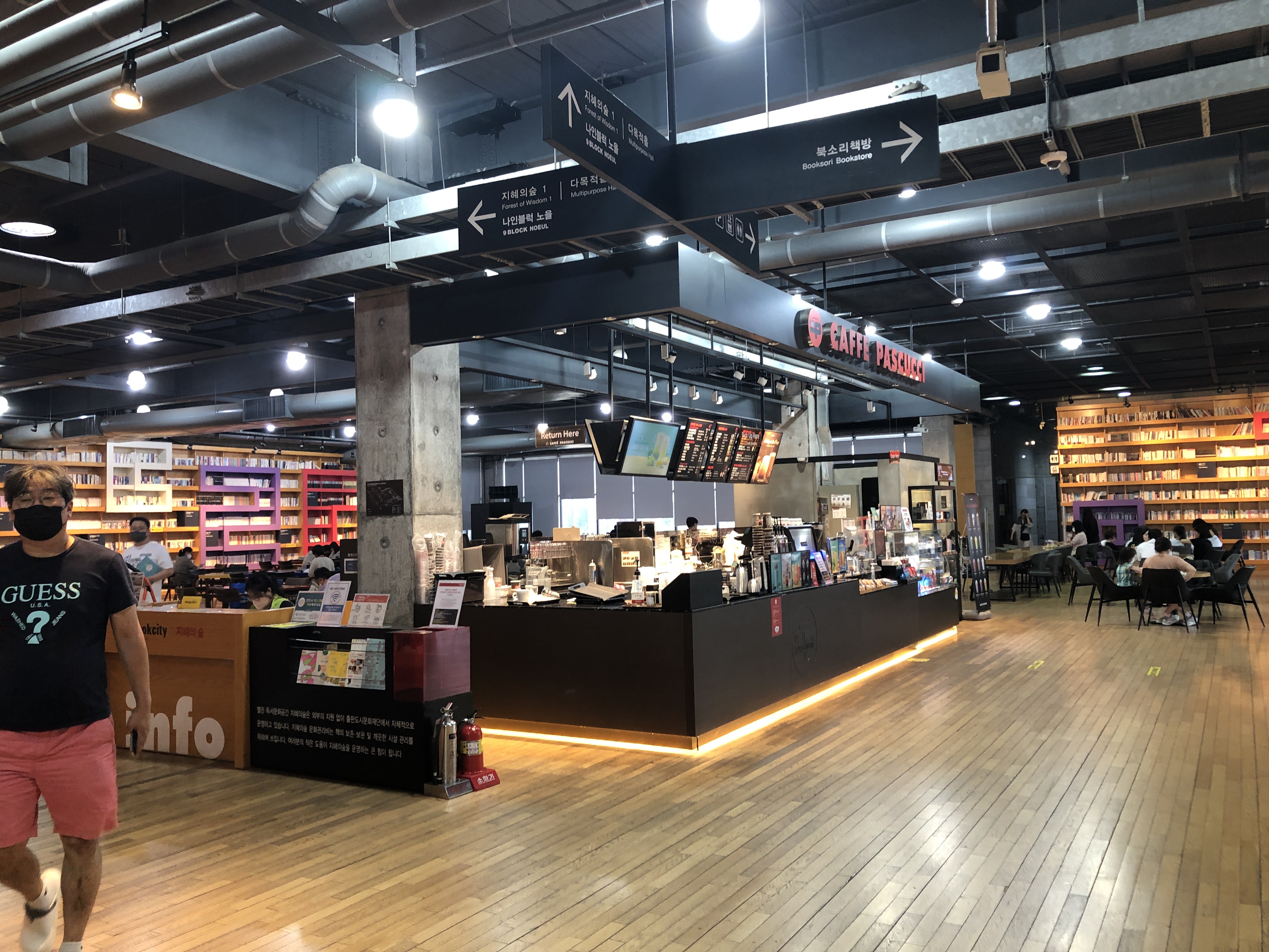 2번 입구로밖에 들어갔을때, 생각보다 시끌벅쩍한 분위기에 조금은 당황스러웠습니다. 사실 도서관은 아니니까 어찌보면 당연한 일입니다. 2번쪽에는 어린이 도서들도 꽤나 눈에 보였고, 카페도 있었습니다. 그래서 조용히 책을 읽는 사람, 여기저기 돌아다니는 어린이들 그냥 커피를 마시며 시간을 보내는 사람등등 많은 이들이 눈에 띄었습니다. 어떤 분들은 파주 아울렛에서 쇼핑을 마치고 잠시 시간을 보내러 오신 것 같기도 했습니다.