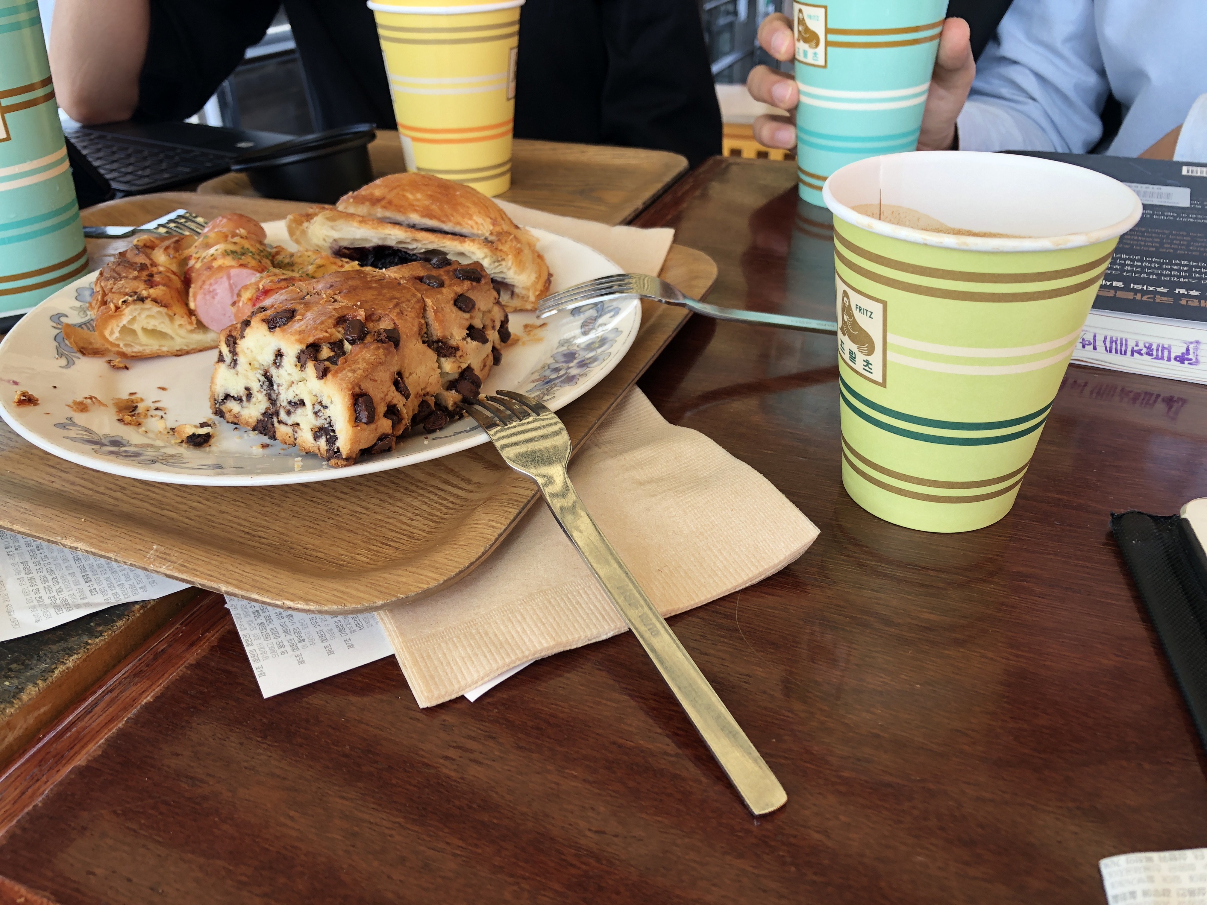 3번 항목은 사장님이 싫어할 항목이겠죠. 콘센트가 있는지는 확인하진 못했습니다. 프릳츠 건물이 옛날 구조를 살려서 했다보니 목재의 따땃한 느낌도 있었고, 밖으로 열린 뷰가 많아서 답답하지 않고 좋았습니다. 그런점에서 자리 자체의 특별함이 많이 묻어났던 것 같습니다. 공부 또는 모임에 좋겠다는 것은, 이날 모임을 하신 분 중 한명이 주변에 회사를 다니는데 점심에 여기서 빵을 먹으며 공부도 한다는 얘기를 들었기 때문입니다. 이런 분들이 꽤 있던 것으로 알고있는데 어쩌면 이런 것들을 잘 살린다면 사장님 입장에서 애먹던 카공족이라는 것이 새로운 비즈니스로 할 수 있지 않을까 싶었습니다. 더 구체적으론 점심에 잠시 짬을 내서 오시는 그런 분들이겠지만 서도요