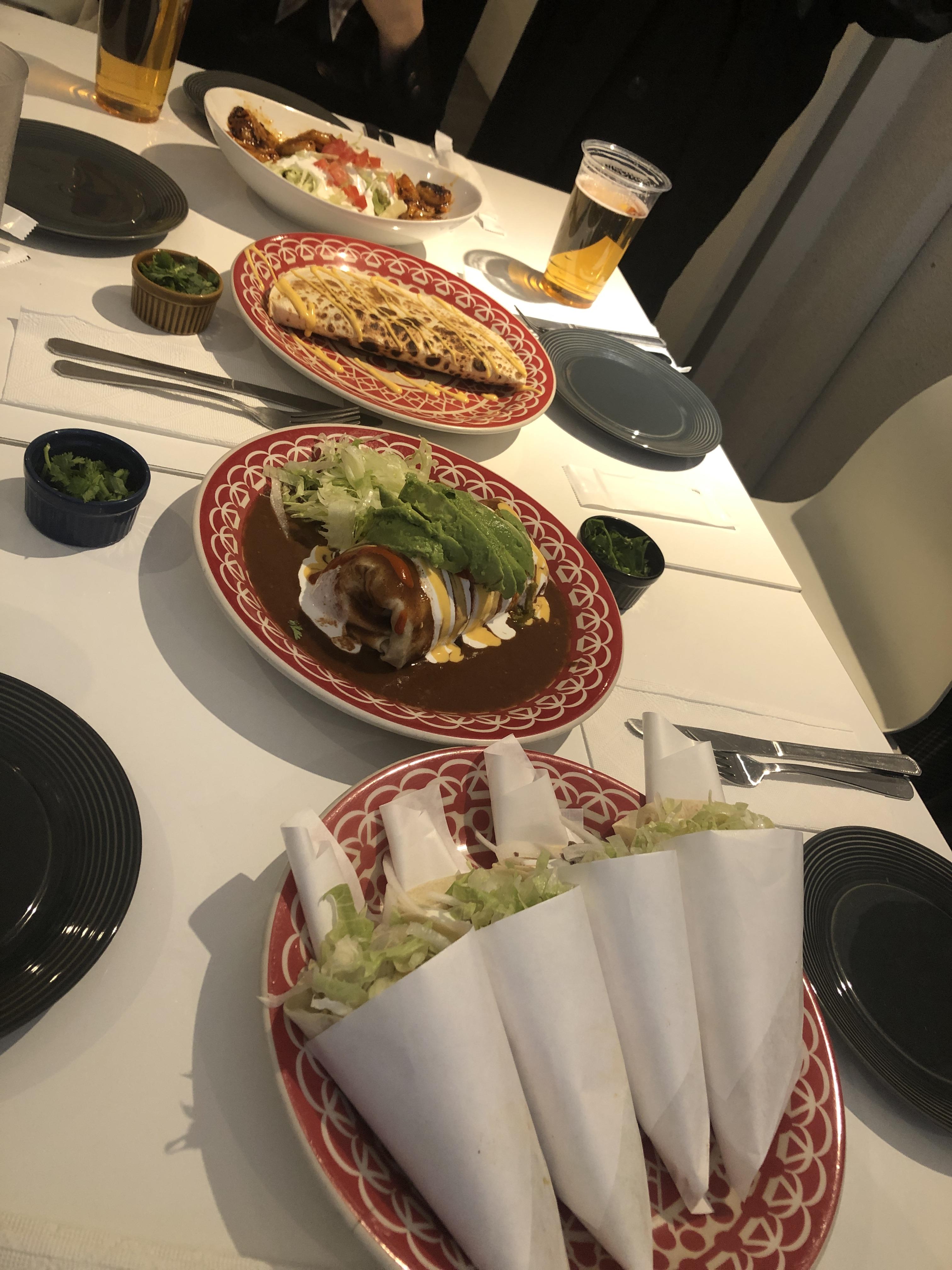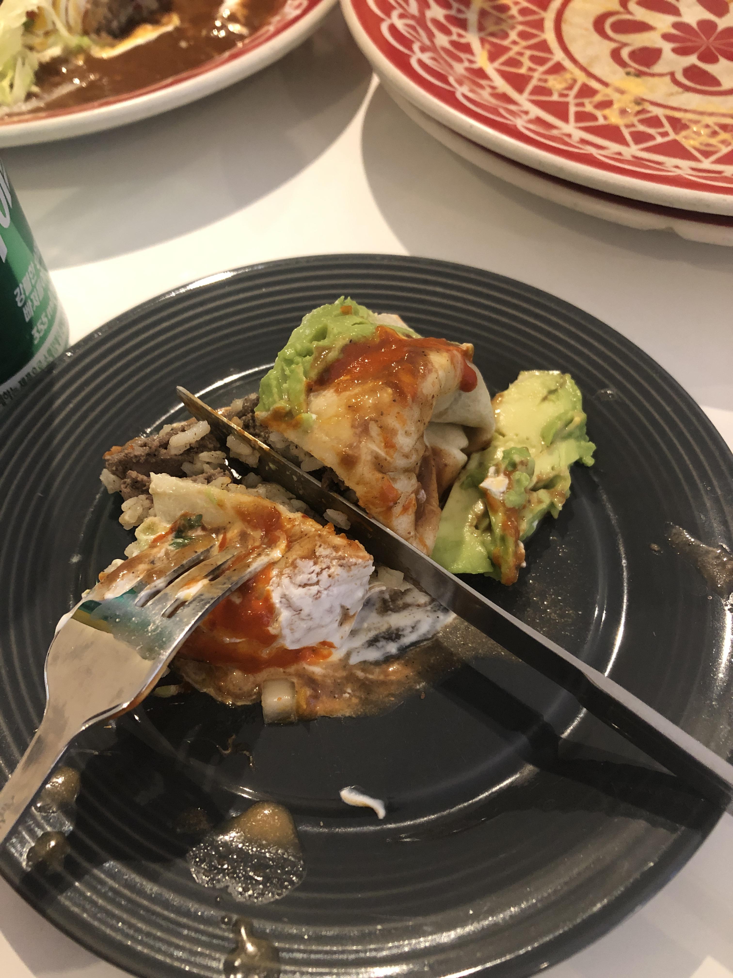 멕시코음식을 자주 먹을일이 없다보니 무얼 시켜야할지 저도 모르겠습니다. 저는 멕시코 현지인 둘이 아니라 자주 가는 두 친구의 도움으로 메뉴들을 먹을 수 있었습니다. 그래서 제가 어떤 메뉴를 먹었는지는 모르겠습니다. 하나는 소고기 타코, 하나는 매운 무언가, 하나는 피자 반으로 접은것 같은애, 하나는 아보카도 올라간 음식이었는데, 아보카도는 추가라고 하네요. 오늘도 노력하는 블로그. 이름을 찾아 적어보겠습니다. 피자 반으로 접은거 같은 것은 퀘사디야, 아보카도 올라간게 엔칠라다, 매웠던게 치미창가였네요. 먹을일이 많지 않다보니 이름도 생소합니다.