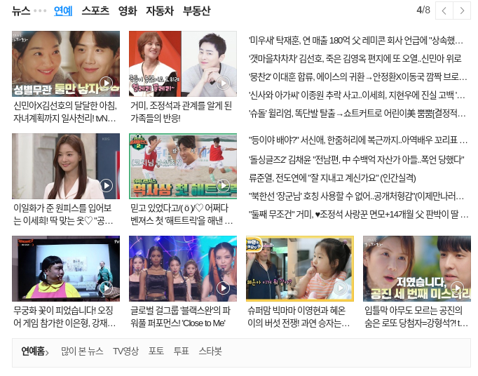 다음 메인 페이지 구조이해