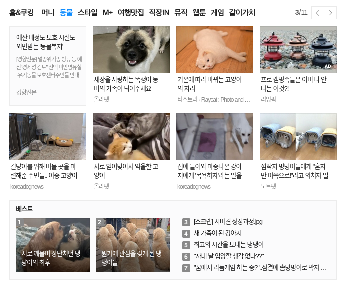 동물 : 1개 하지만 티스토리 탭에 있는 것과 중복