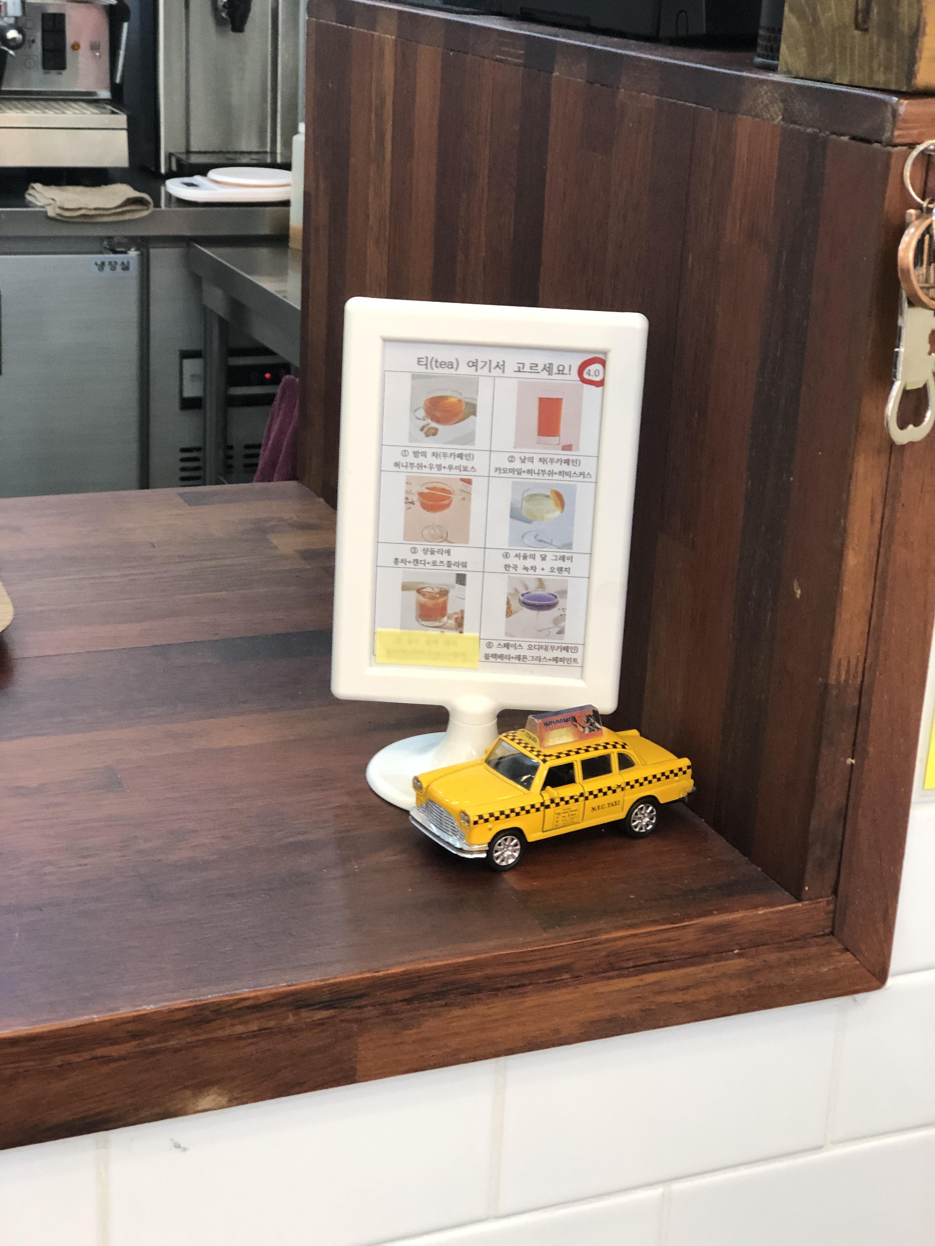 지난 포스팅에 커피어반을 얘기했습니다. 커피어반은 왠지 모르게 여행과 여행사라는 컨셉을 가진 것 같았습니다. 비행기 모형이 그랬고, 벽에 붙어있던 그림들이 그랬습니다. 반대로 뉴욕택시 디저트는 뉴욕택시라는 컨샙에 충실해 보였습니다. 특히 종종 보이는 택시 모형이나 벽에 붙어있는 뉴욕 그림들은 그런 분위기를 한층 더 북돋아 줬습니다. 이런 포스팅을 계속 쓰다보니 가끔은 사장님을 붙잡고 왜 이름을 이렇게 지었을까 물어보고 싶어졌습니다.