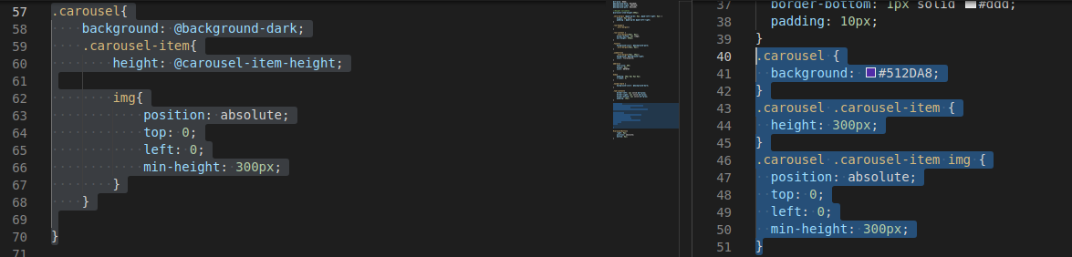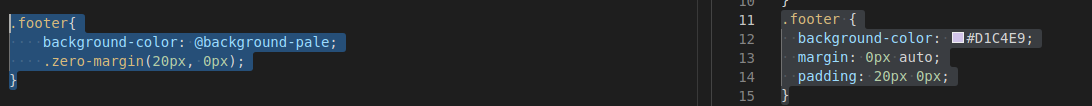 background-color부분을 보시면 @background-pale 부분이 대응되는 값인 #D1C4E9로 바뀐것을 볼 수 있습니다.