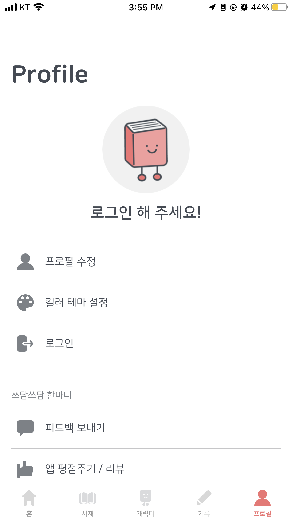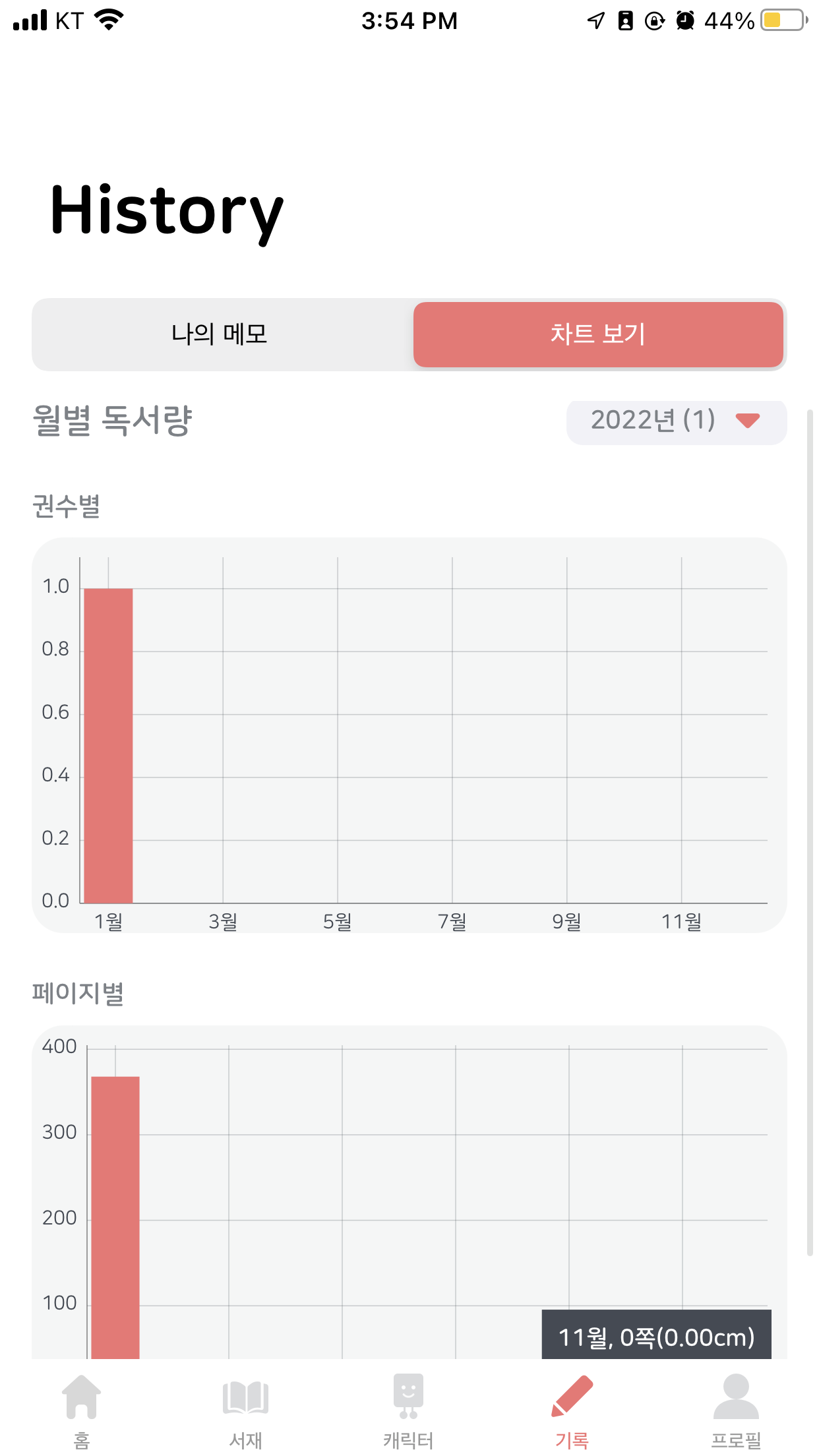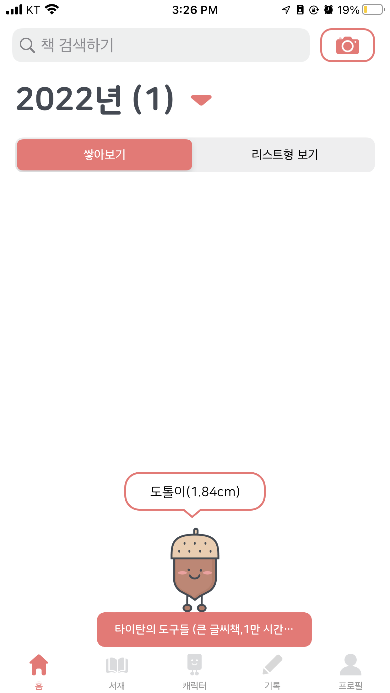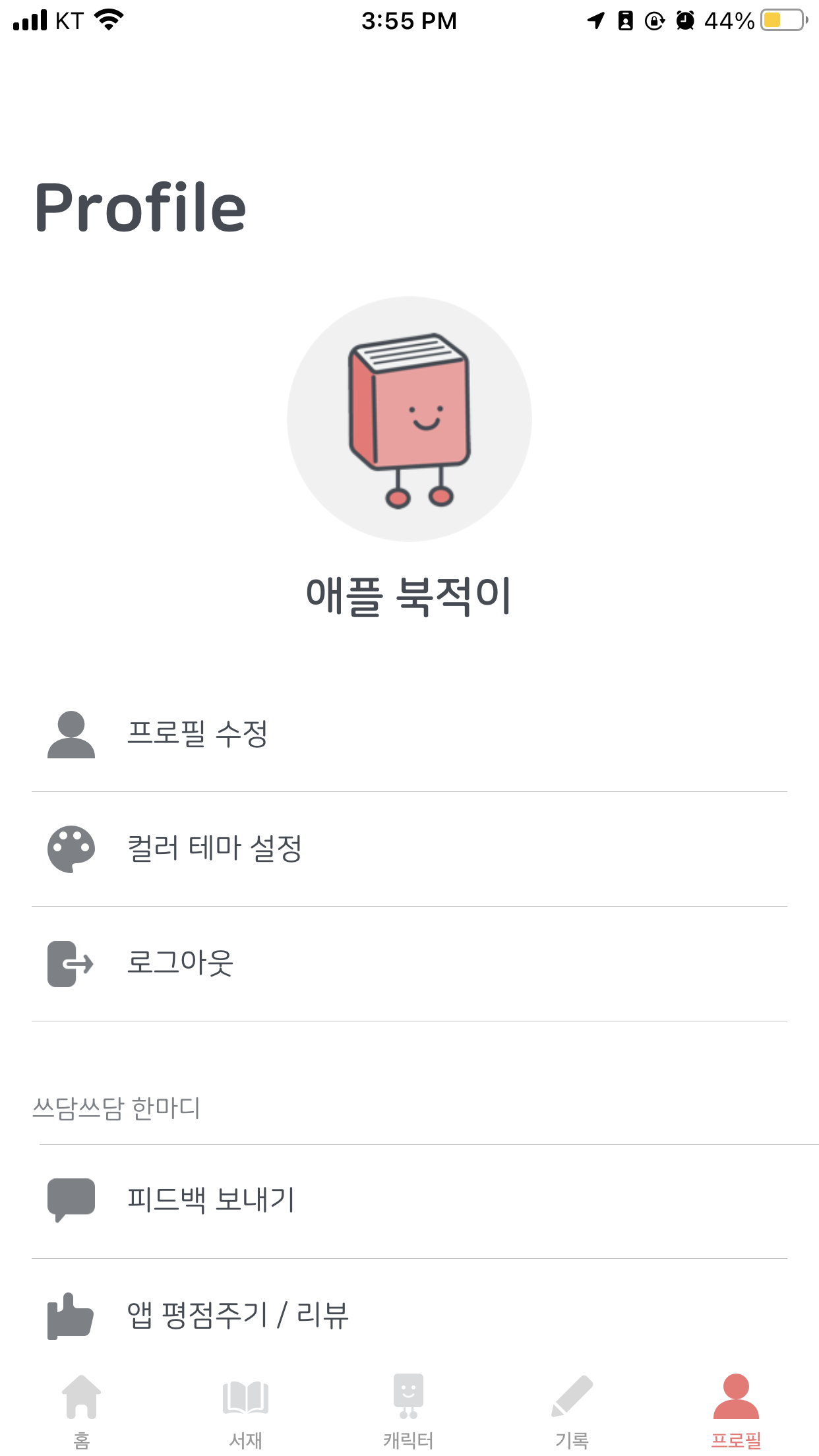 위와 같은 형태를 통해 내가 얼마나 책을 읽었는지 확인가능하다. 또한 앞에서 본것처럼 책을 읽은 양에 따라 캐릭터 변경 가능.