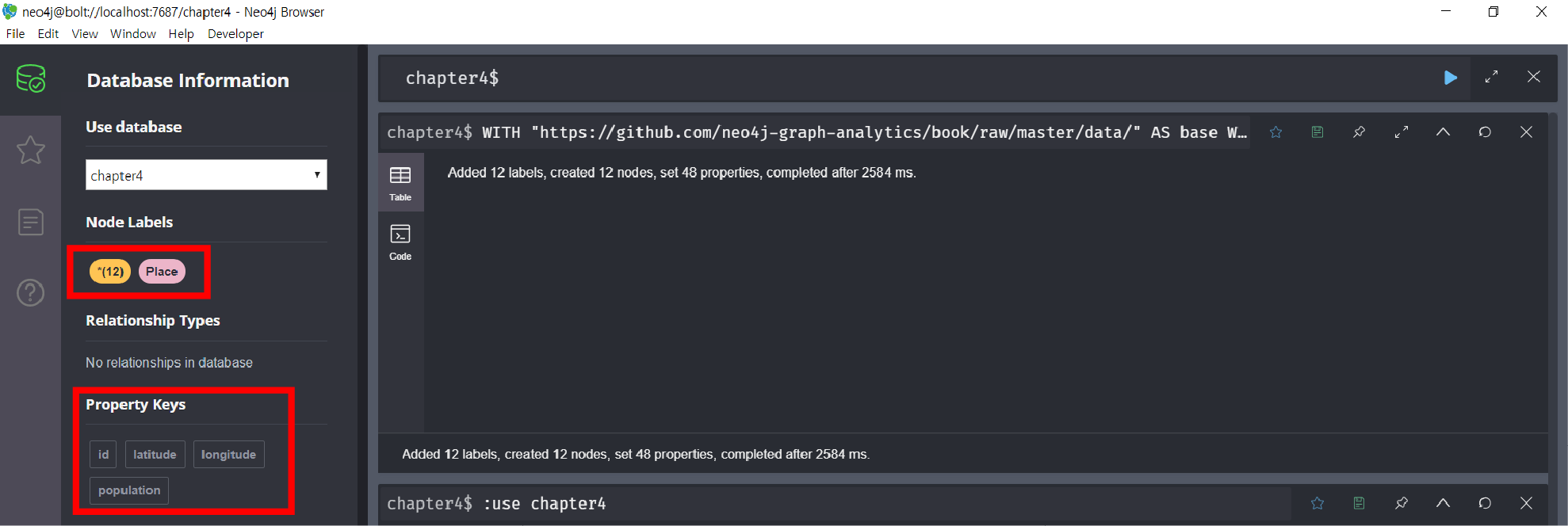 데이터 가져오기는 두단계 입니다. 첫째로, Node 들의 데이터를 가져오고 그 후 Relation정보를 가져 옵니다. 데이터베이스 위치를 꼭 확인하도록 합시다.