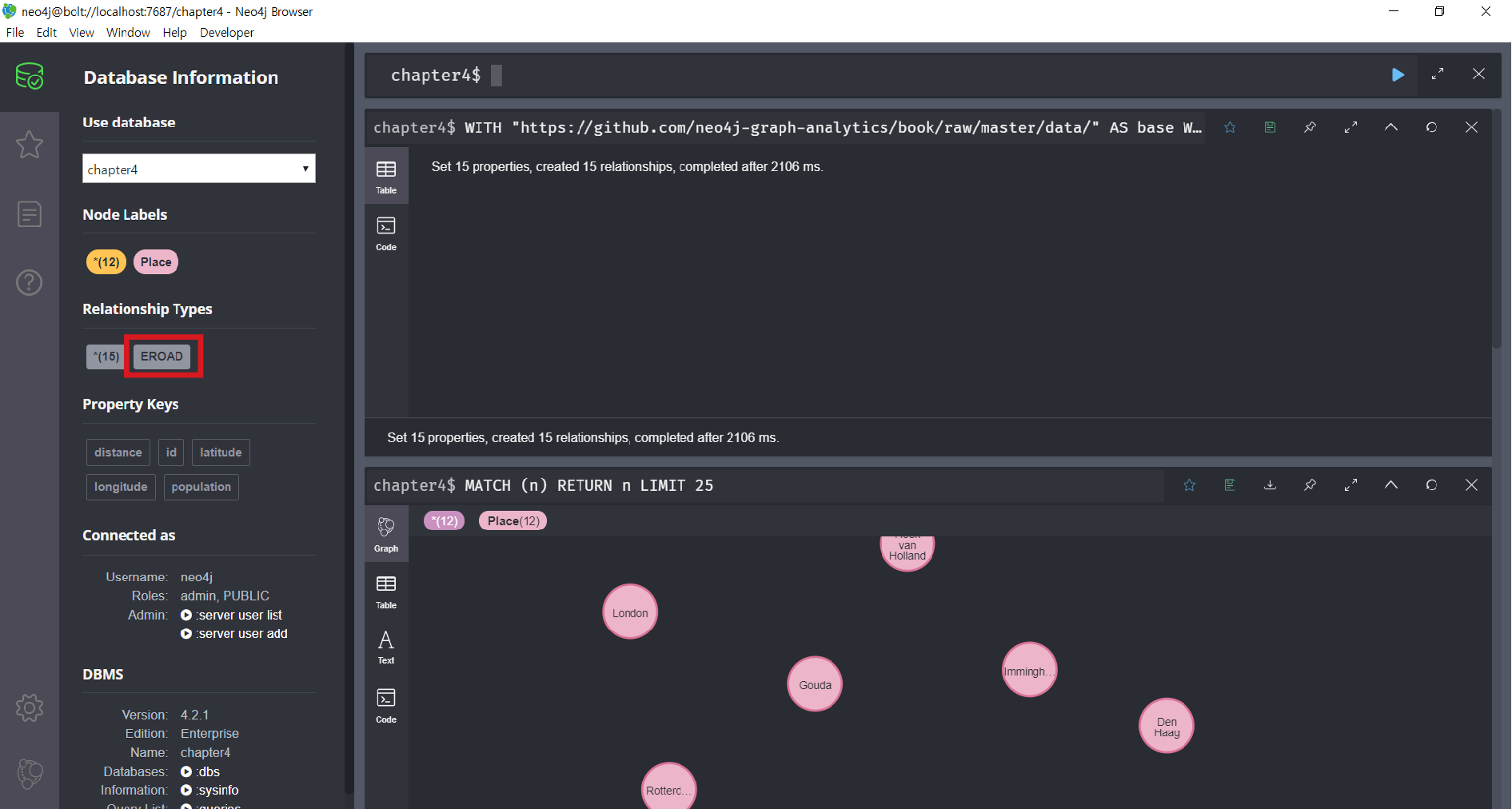 위의 코드가 정상적으로 실행됬다면, EROAD라는 관계가 추가되어야 합니다. 그리고 다시한번 데이터를 확인해 봅시다.