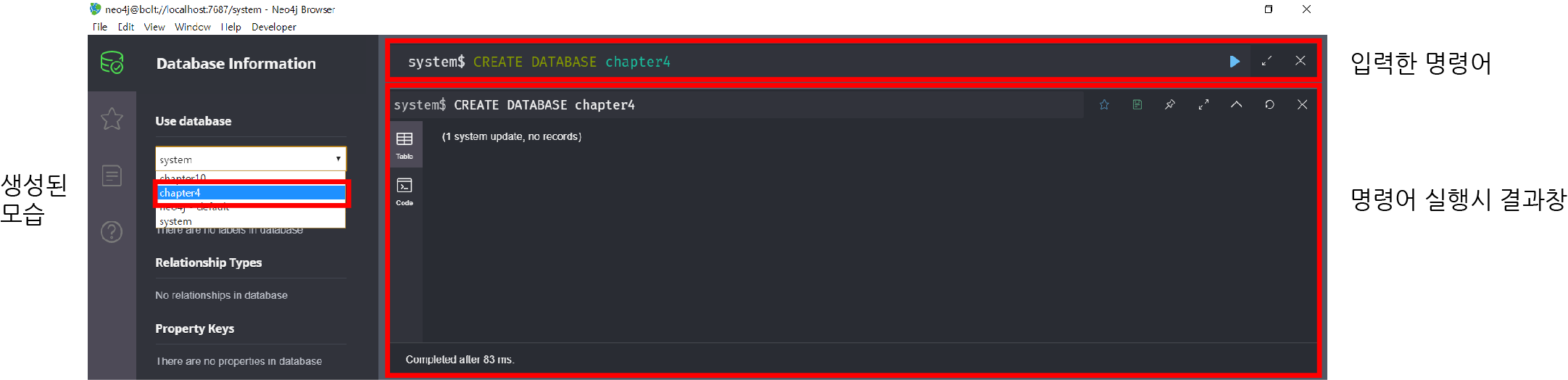 우리는 이미 데이터 베이스 안에 있지만, 또다시 데이터 베이스를 만듭니다. 이렇게 시스템이 설계된 이유는 아직 모르겠습니다. 추후에 예제에서 서로간 연결하는게 나올 것 같습니다. 우선 데이터 베이스를 이동해보겠습니다.