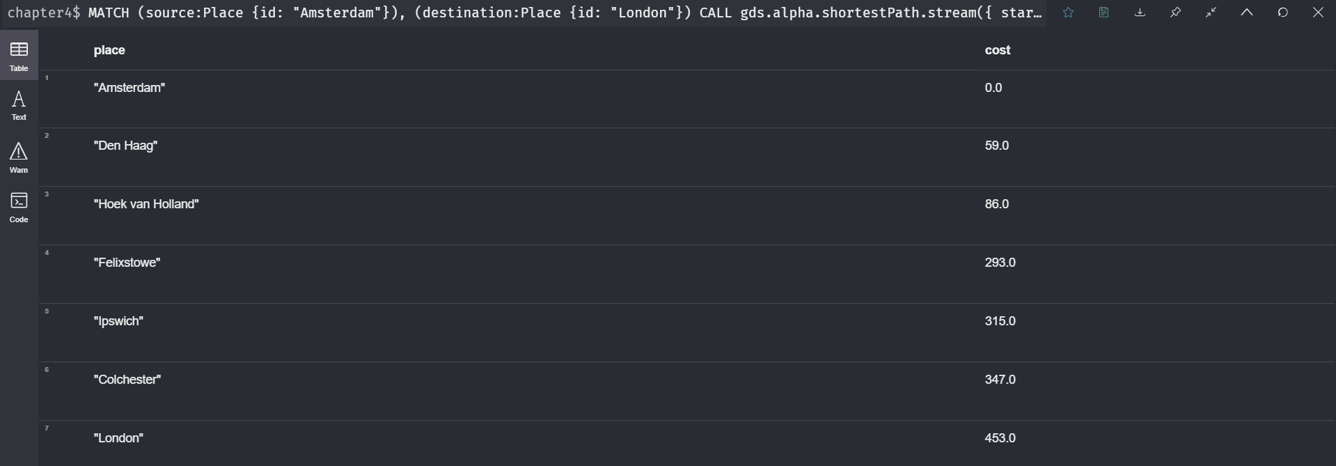 RETURN gds.util.asNode(nodeId).id AS place, cost;