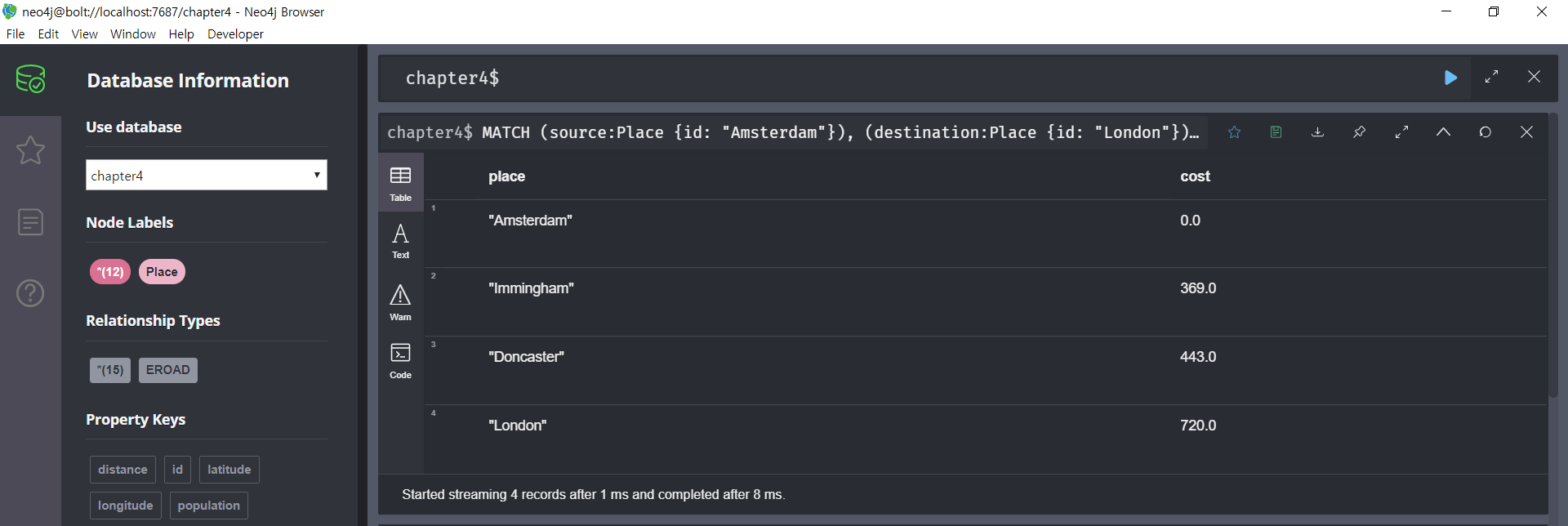 MATCH (source:Place {id: "Amsterdam"}),