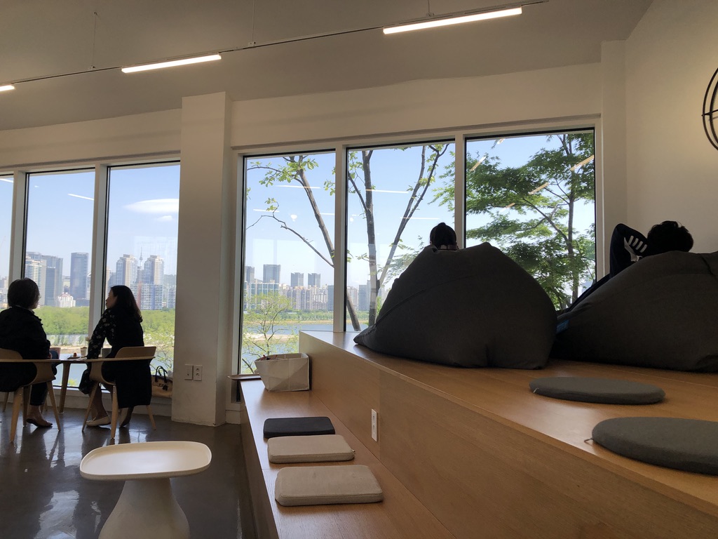 편안하게 앉을 누워있을 수 있는 자리도 있어서 다양하게 한강뷰를 즐길 수 있어보였다. 내가 도착한 시간이 오전 11시 였는데, 이미 창가자리는 점령되어 있었다. 또한 분위기 자체가 똥침 찌르면서 빨리 안나가나 눈치주는 그런 카페는 아니라서 몇시간이고 자리에서 수다떠시는 분들을 많이 볼 수 있었다. 그걸 관찰 할 수 있었던 나도 2시간 정도는 여기에 머물러 있었던 것 같다.