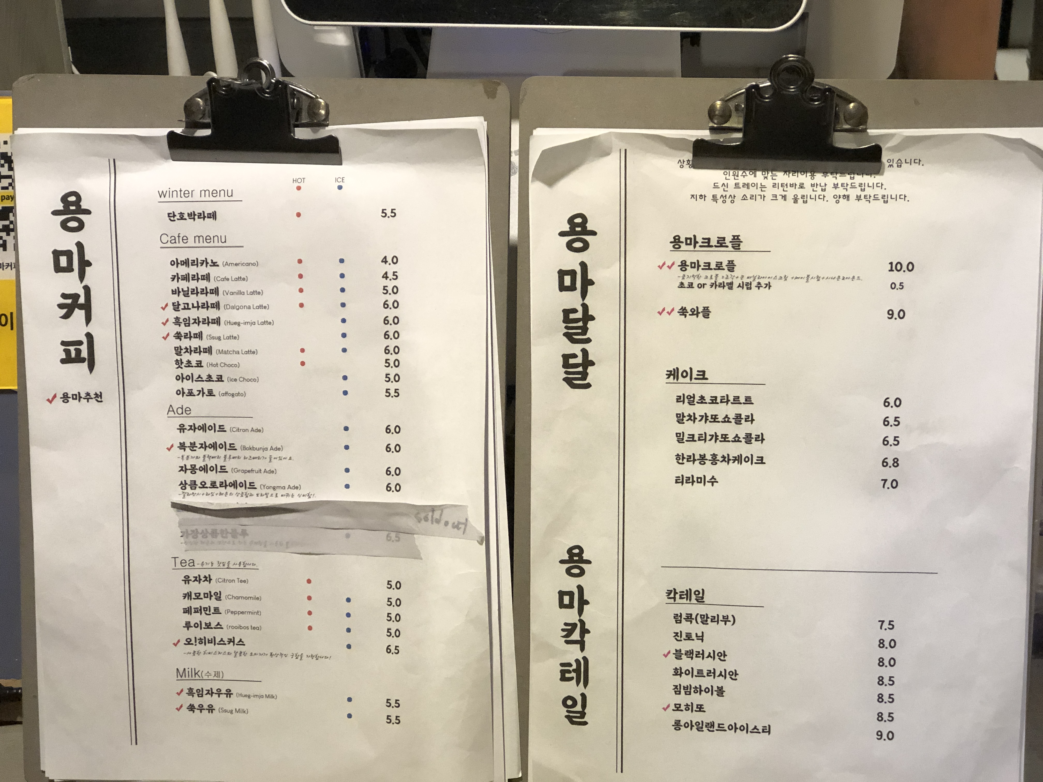 오늘은 힙한 카페, 용마커피를 다녀온 이야기를 써봤다. 자개장으로 내부를 장식한점은 이곳만의 차별점이었다. 다만 몇가지 아쉬운 점도 눈에 띄었다. 첫째는 내부에 화장실이 없어 1층으로 올라가야한다. 근데 이게 남녀 공용이라 호불호가 크게 갈릴듯 싶다. 그리고 개인적인 취향인데, 소리가 좀 울리는 느낌이 들었다. 이제 나이들어서 소리가 울리면 대화가 잘 안된다. 근데도 잘 하는 사람들을 보면 신기하다. 좀더 푹신푹신한걸 벽에 바르면 흡음이 될텐데 그런점이 개선되면 좀더 좋은 카페가 될 것 같다.