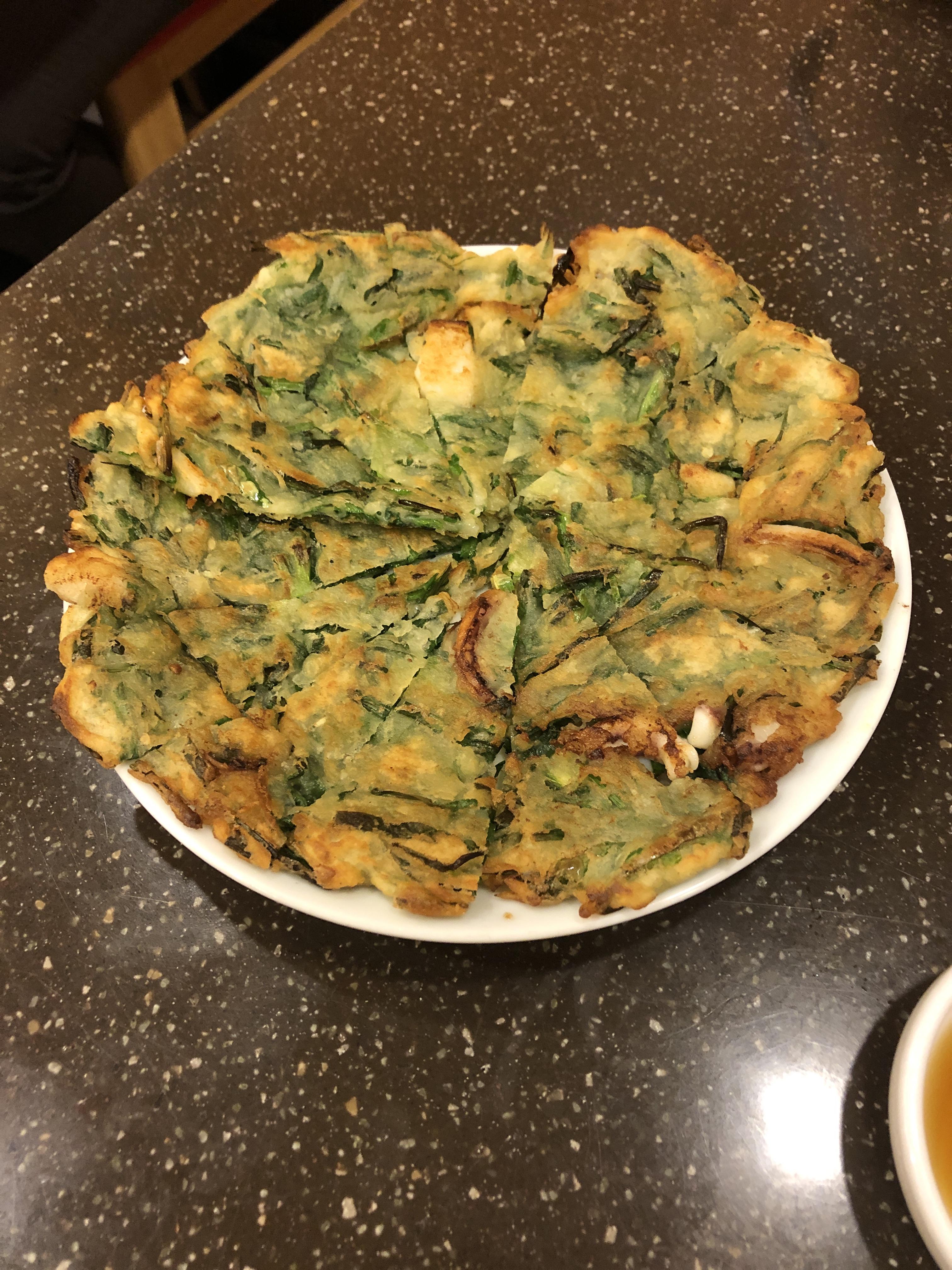 시키면 5분도 안되어서 메뉴가 착착 나왔던 듯 하다. 부추전은 아삭하면서도 중간에 씹힌느 고추가 알싸한 맛이 좋았다. 그리고 밀가루가 뭉치지 않은 맛이어서 담백하면서도 알싸하게 먹을 수 있었다. 사람들이 왜 그렇게 술을 마시는지 이해할 수 있었다.