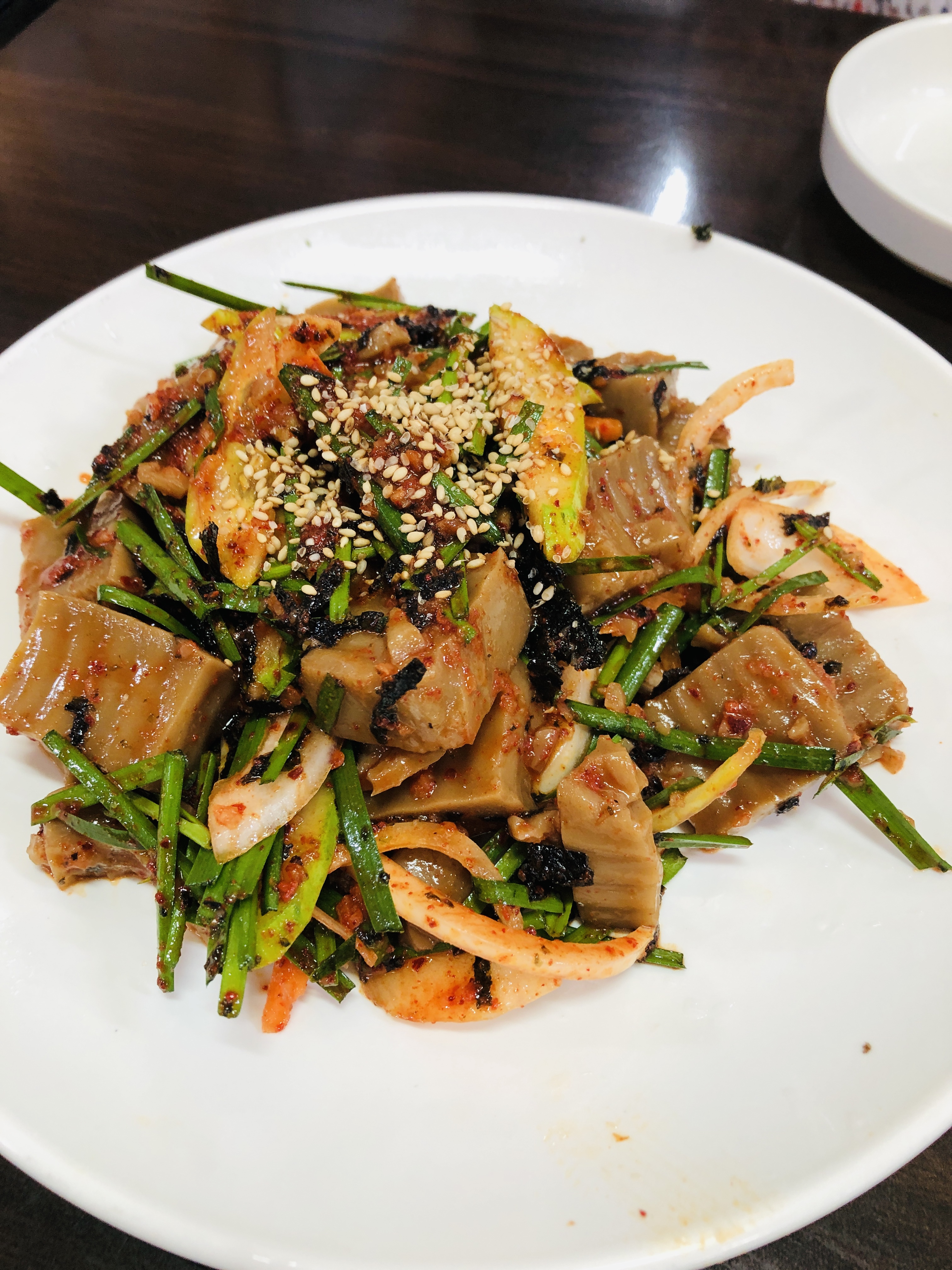 도토리묵은 너무나 상큼했다. 겉이 마르지도 않았다. 그리고 부추들도 아삭아삭한 게 정말 입맛을 잘 돋우는 맛이었다.