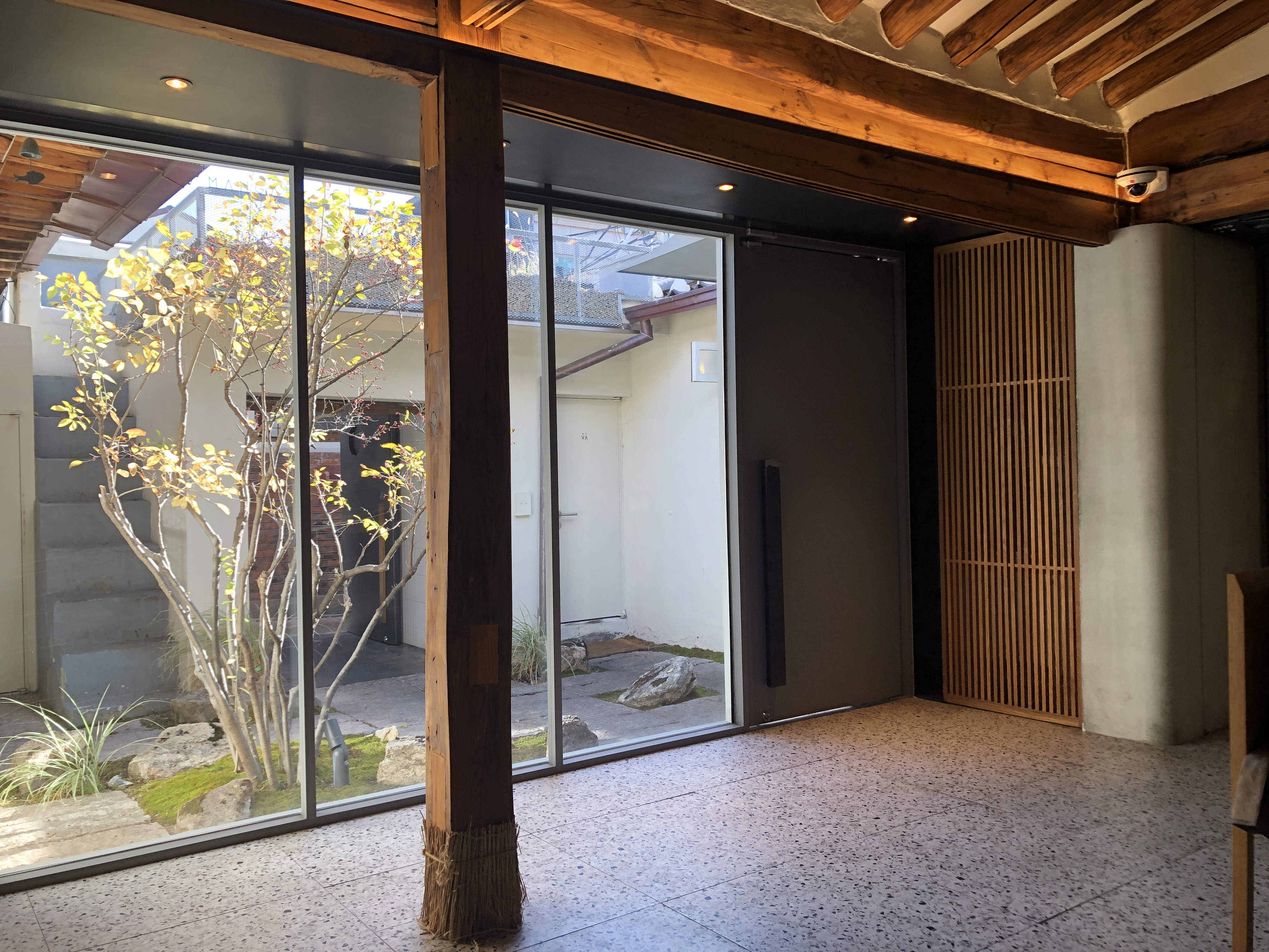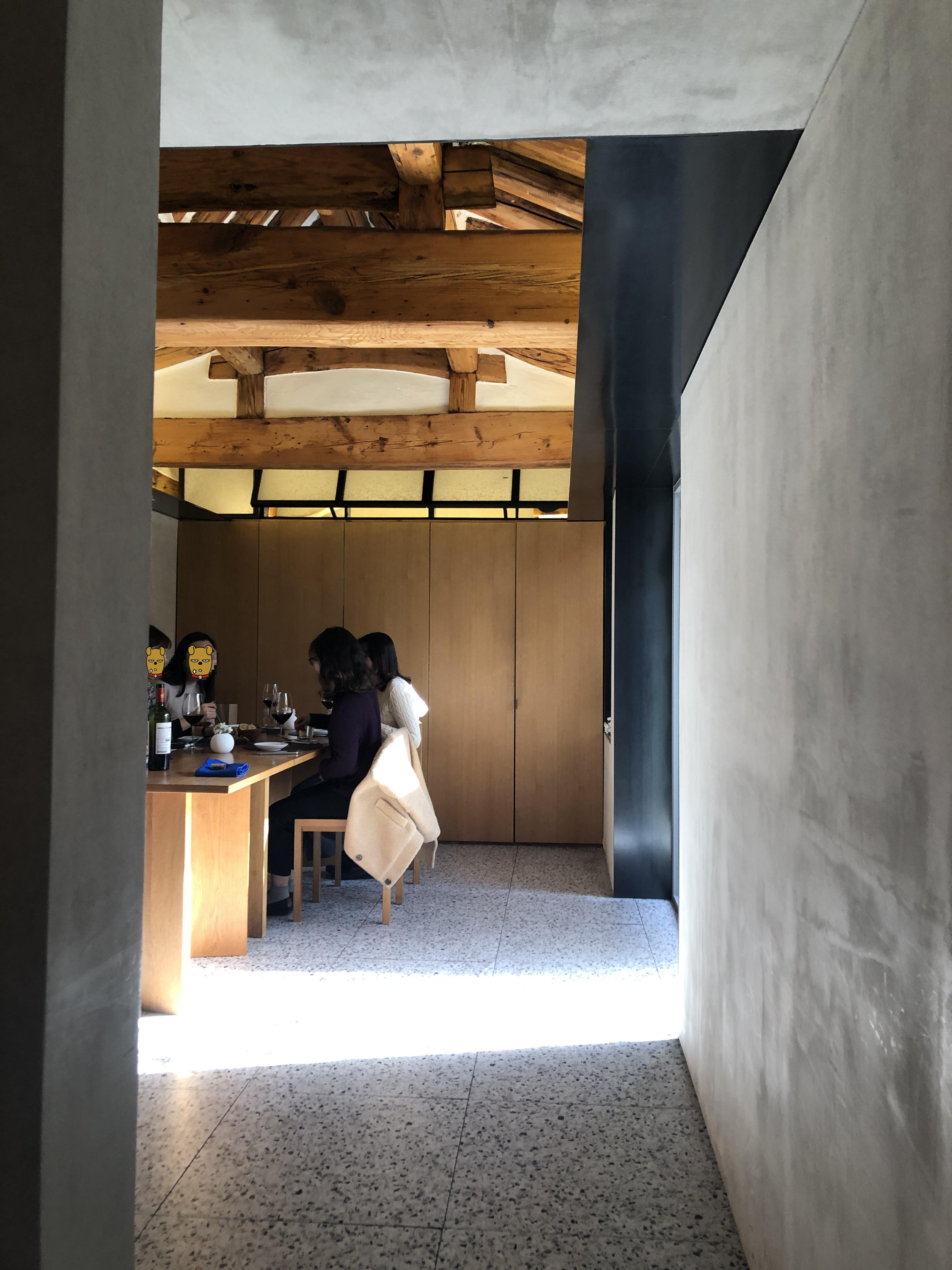 내부 건물은 차가운 콘크리트 또는 석재와 한옥의 따뜻함이 공존해 음식과 공간의 컨셉을 지켜나가려는 모습이 보였고, 이곳에 오는 사람들이 만들어내는 분위기는 약간은 가볍지만 시끄럽지는 않은 캐쥬얼한 분위기였다.