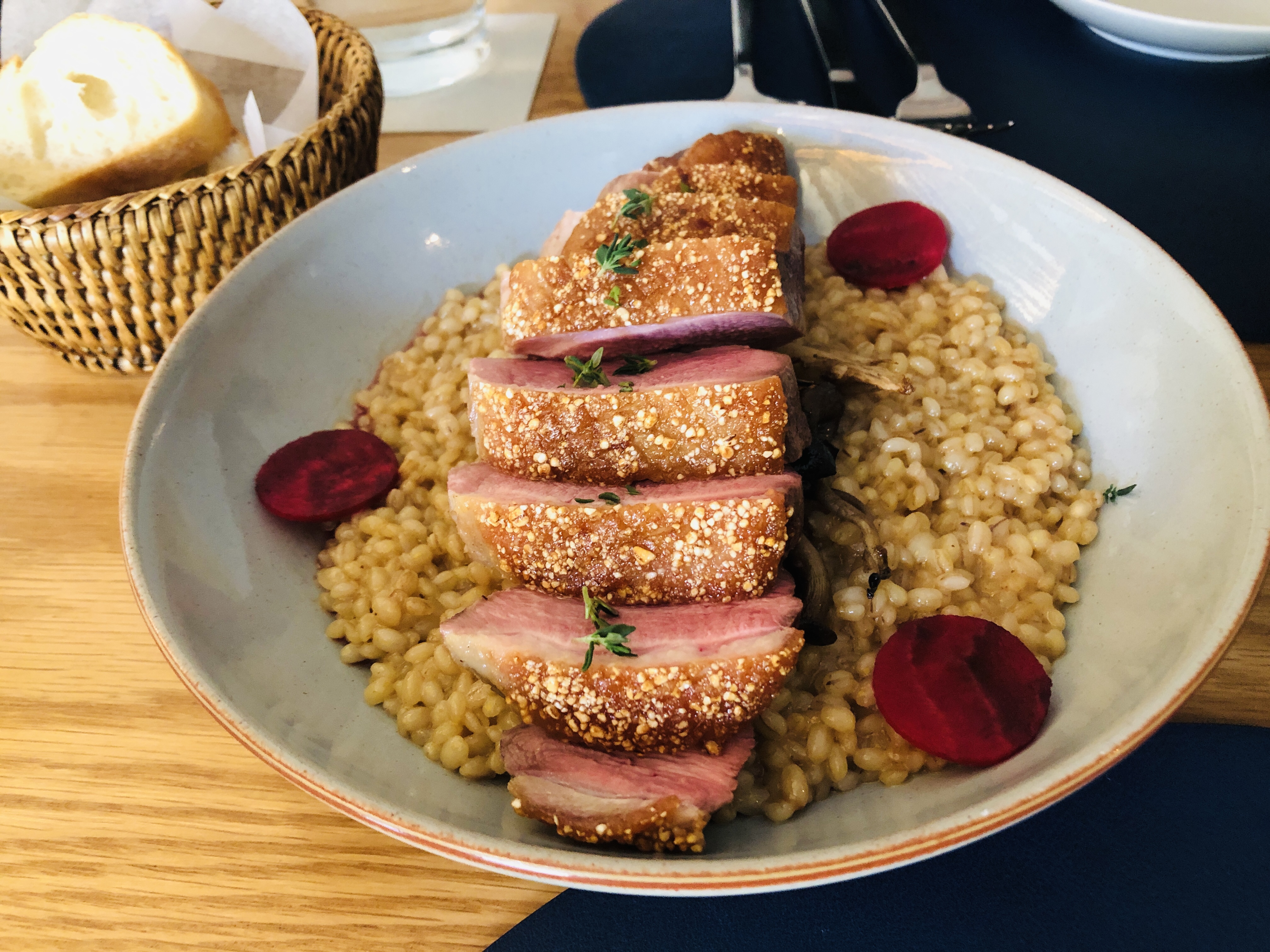 오리 리조또의 보리가 굉장히 맛났다는 기억이 난다. 역시 셰프의 손길은 다른 건가. 오리고기는 훈제 오리와는 다소 다른 맛이었다. 위에 사진에서 보면 약간 덜 익은 거 같아 보여도 제대로 익은 게 맞다.