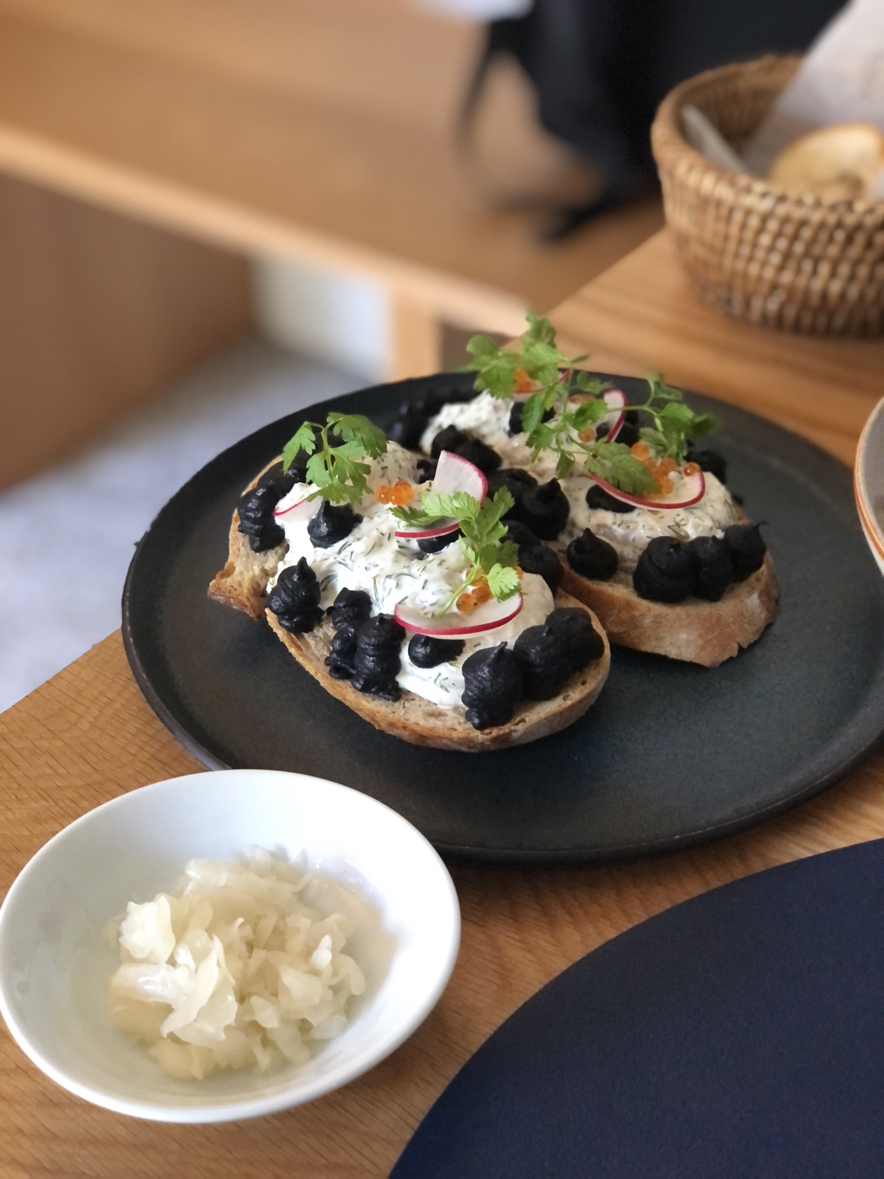 예전에 교수님이 말하길 우리나라 메뉴는 메뉴를 설명하지 못한다는 말을 한 적이 있다. 그러니까 비빔밥 하면 비빔밥에 뭐가 들어가 있는지 정확히 표현하고 있지 않다나 뭐라나 그런 얘기였다. 아무튼 이 메뉴는 이름이 참 정직하다. 음 한 군데 정직하지 못하다. 새우와 먹물을 곁들인 빵이다. 시켜먹은 메뉴 중에서 가장 가벼웠지만 시각적으로 무거웠다.