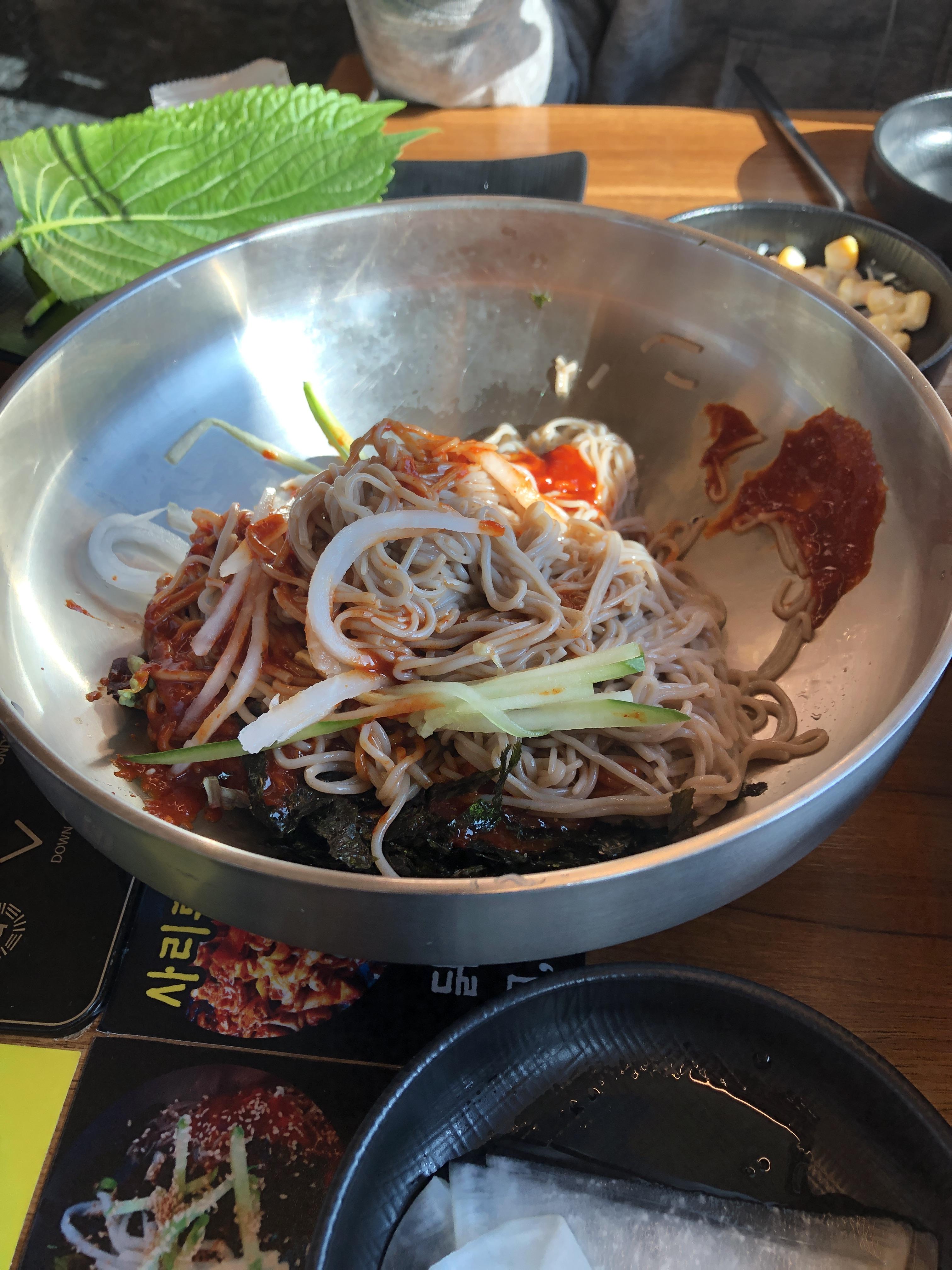 조리 방법때문에 그런지 음식이 빠르게 나오는 편은 아니었습니다. 그러니 조금 여유를 가지고 오시는 편이 좋을 것 같습니다. 막국수는 맵다고 안내판에 써있으니, 참고해서 드시면 됩니다. 동치미 국물도 주시니 매운 정도를 조절 할 수 있습니다.