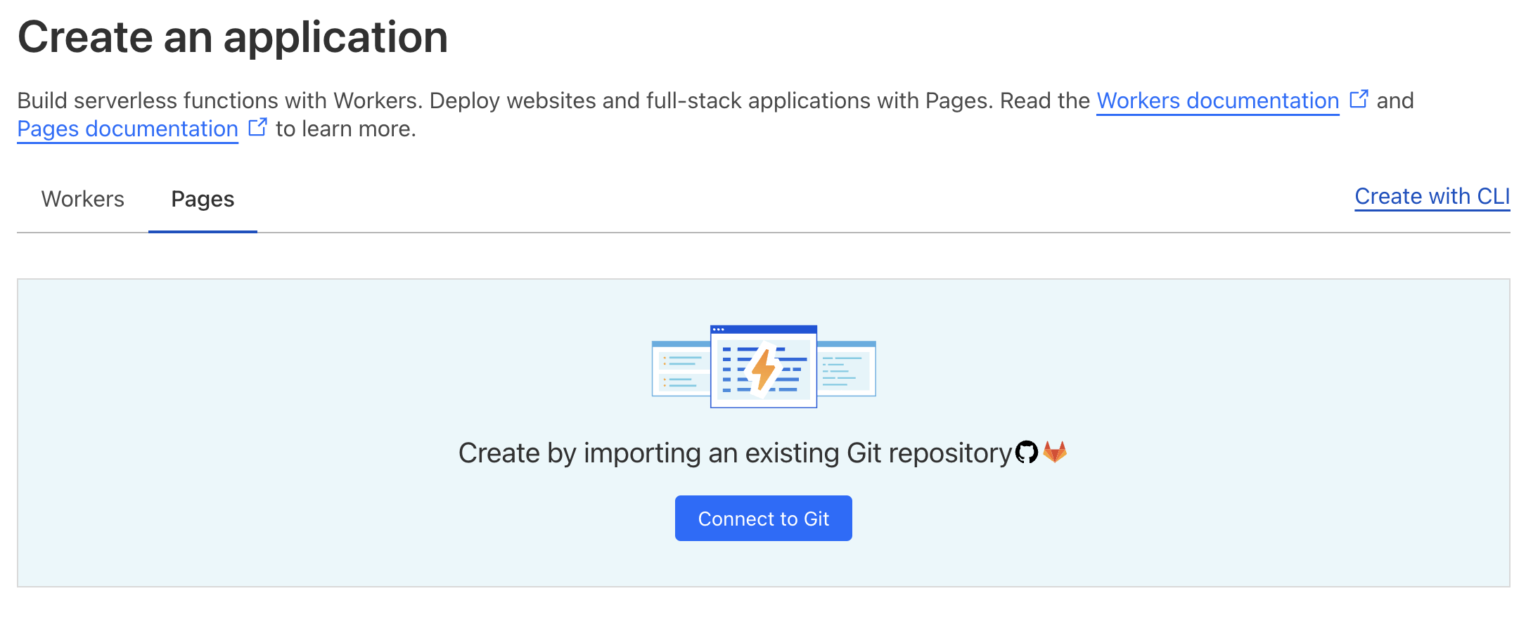 Worker & Pages > Create application > pages > Connect to git 순서로 진행한다.
