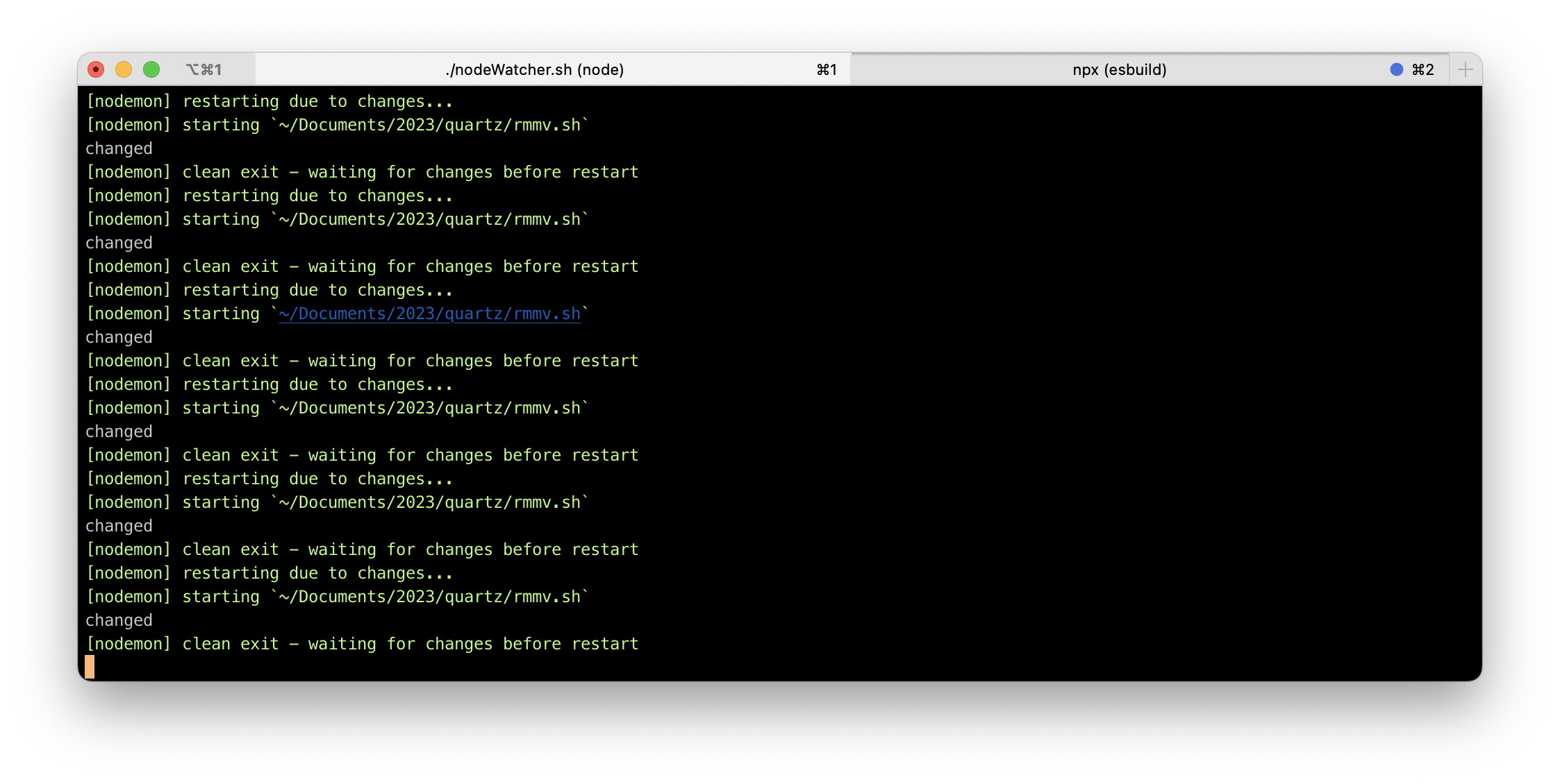 fswatch ~/Library/Mobile\ Documents/iCloud~md~obsidian/Documents/MyFirstVault | xargs -n 1 ~/Documents/2023/quartz/rmmv.sh