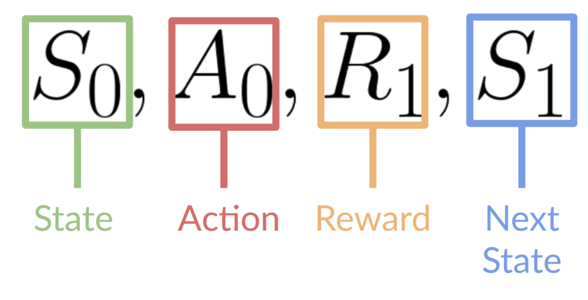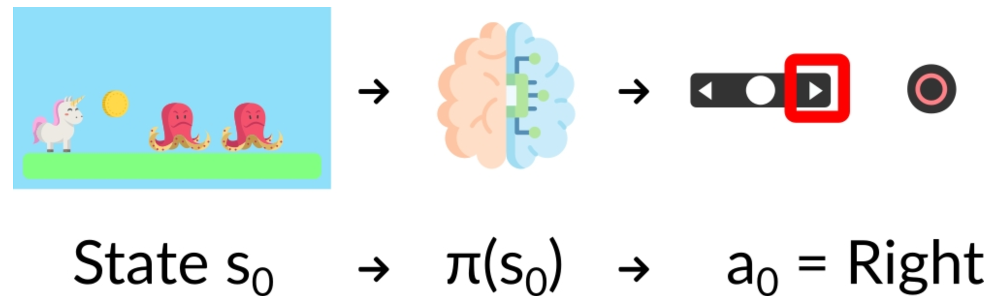 - 에서 행동()을 택함. 예를들면 오른쪽으로 이동