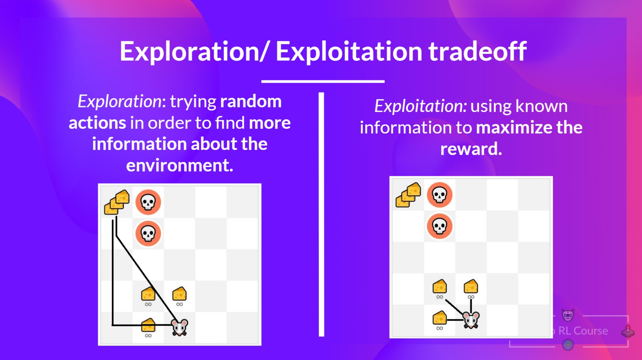 만약 쥐가 충분한 탐험을 하지 않고 기존방법을 고수하게 된다면 주위의 3개 치즈만 보상으로 받으며 기대 보상을 최대화하기 힘들 것이다.