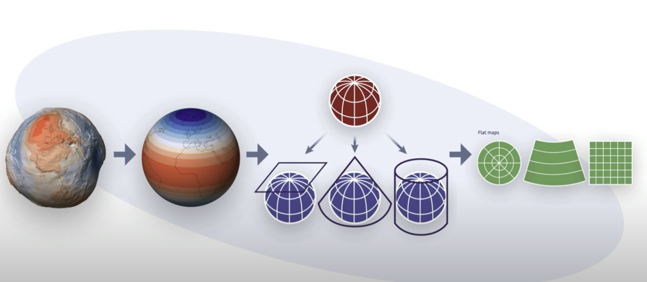 지도를 쉽게 쓰고 있지만 지도가 어떻게 만들어지는 어느정도 이해가 필요합니다. 그래야 코드에 나오는 crs(coordinate reference system) 등에 대해서 알 수 있습니다.