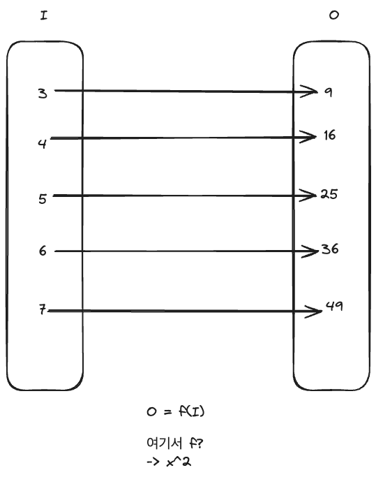 어떤 주어진 값이 있다면 이를 수학적 함수를 이용해 다른 값으로 만드는 것입니다. 이를 매핑이라고 표현할 수 있습니다. 그럼 위 그림을 매핑하는 수학적 함수는 무엇일까요?