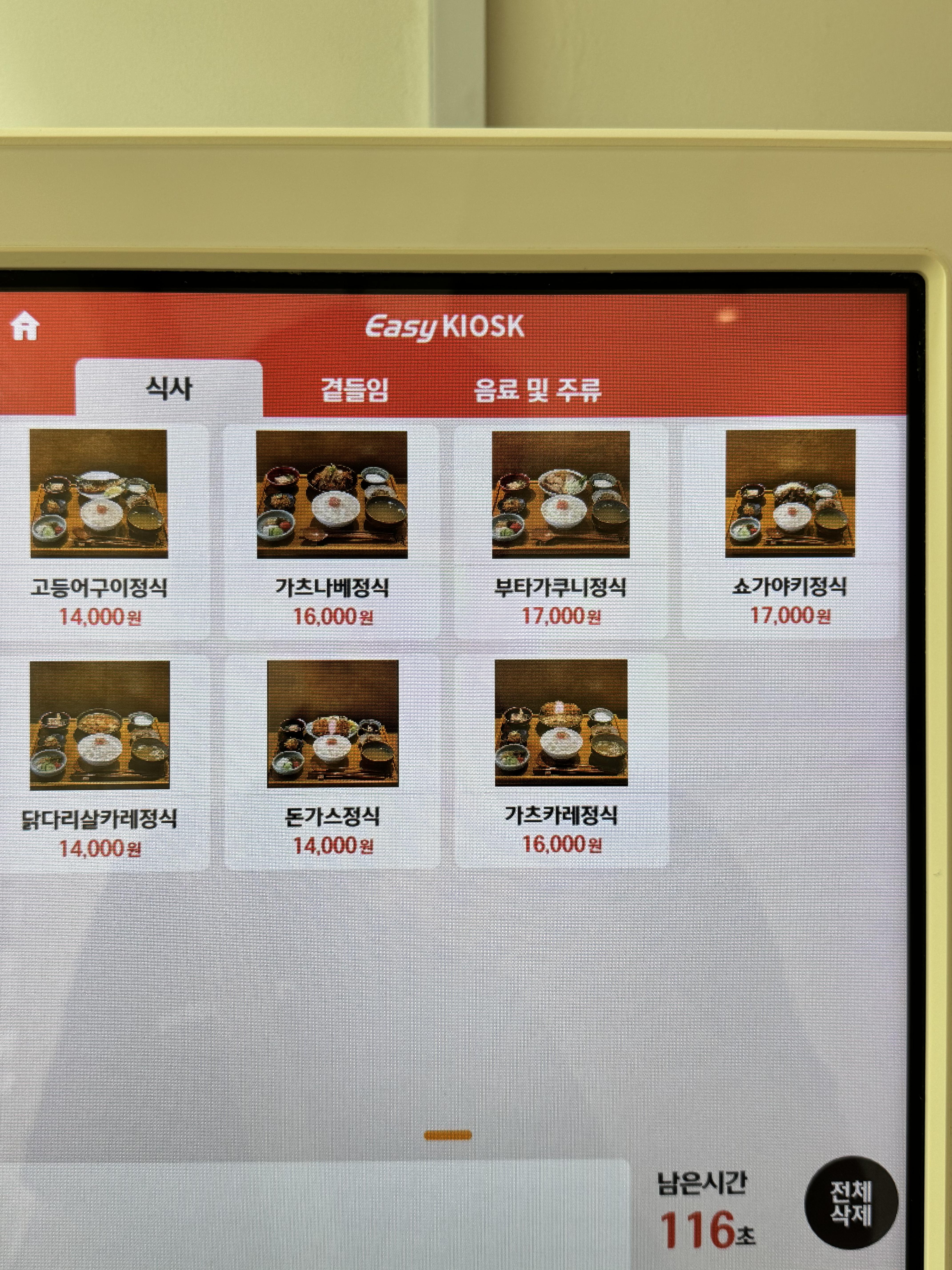 입구 왼쪽에 위치한 키오스크에서 메뉴를 주문할 수 있습니다. 주요 메뉴는 다음과 같습니다: