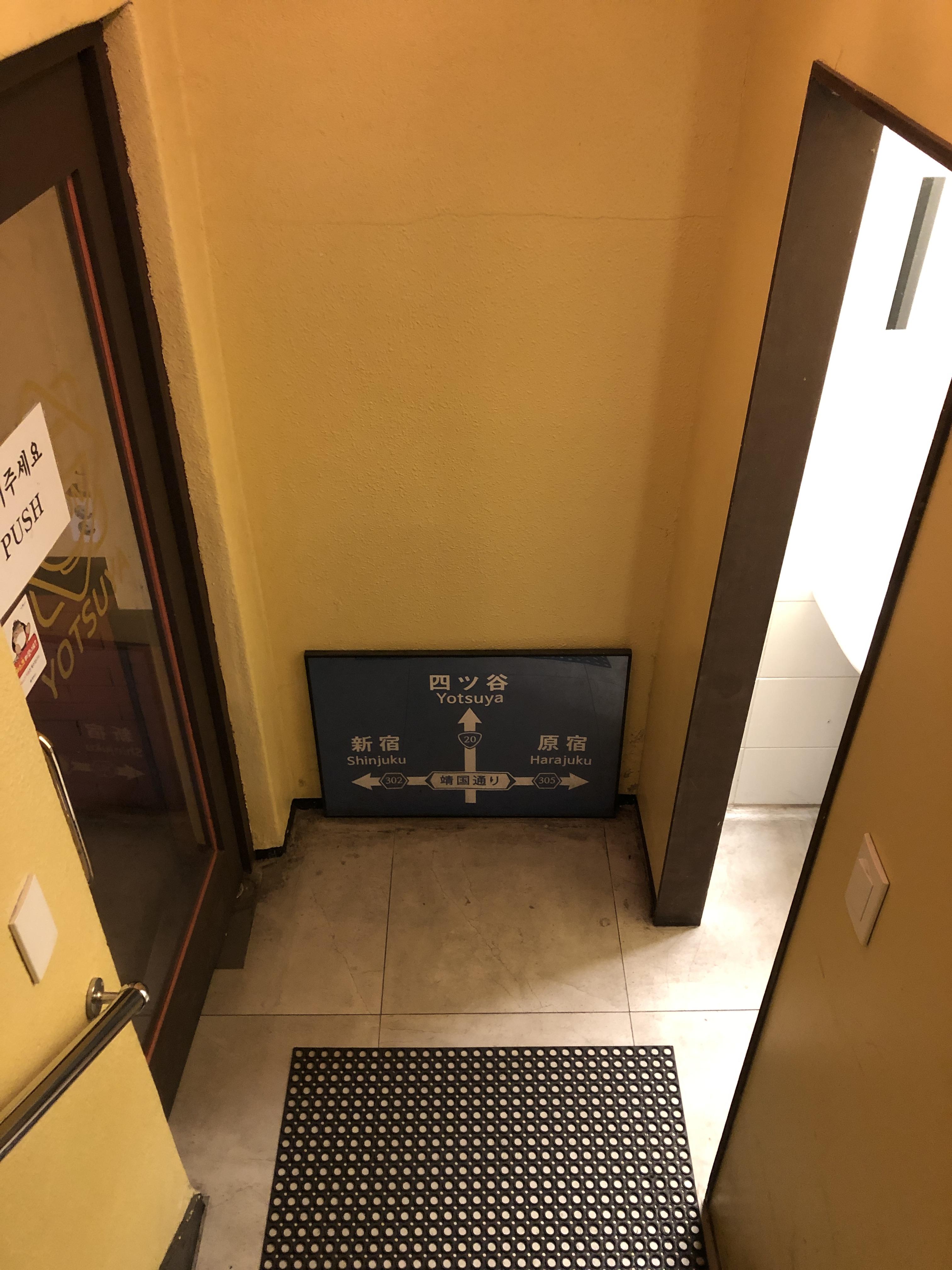 가게는 전체적으로 일본느낌을 많이 내려고 노력한거 같았습니다. 약간 누리끼리한 조명과 회전초밥을 돌려먹어야할 것 같은 테이블이 그런느낌이었습니다. 또한 계단을 내려오면서 보이는 표지판들은 이곳이 일본, 도쿄에 있는 지명임을 강조하고 있었습니다.
