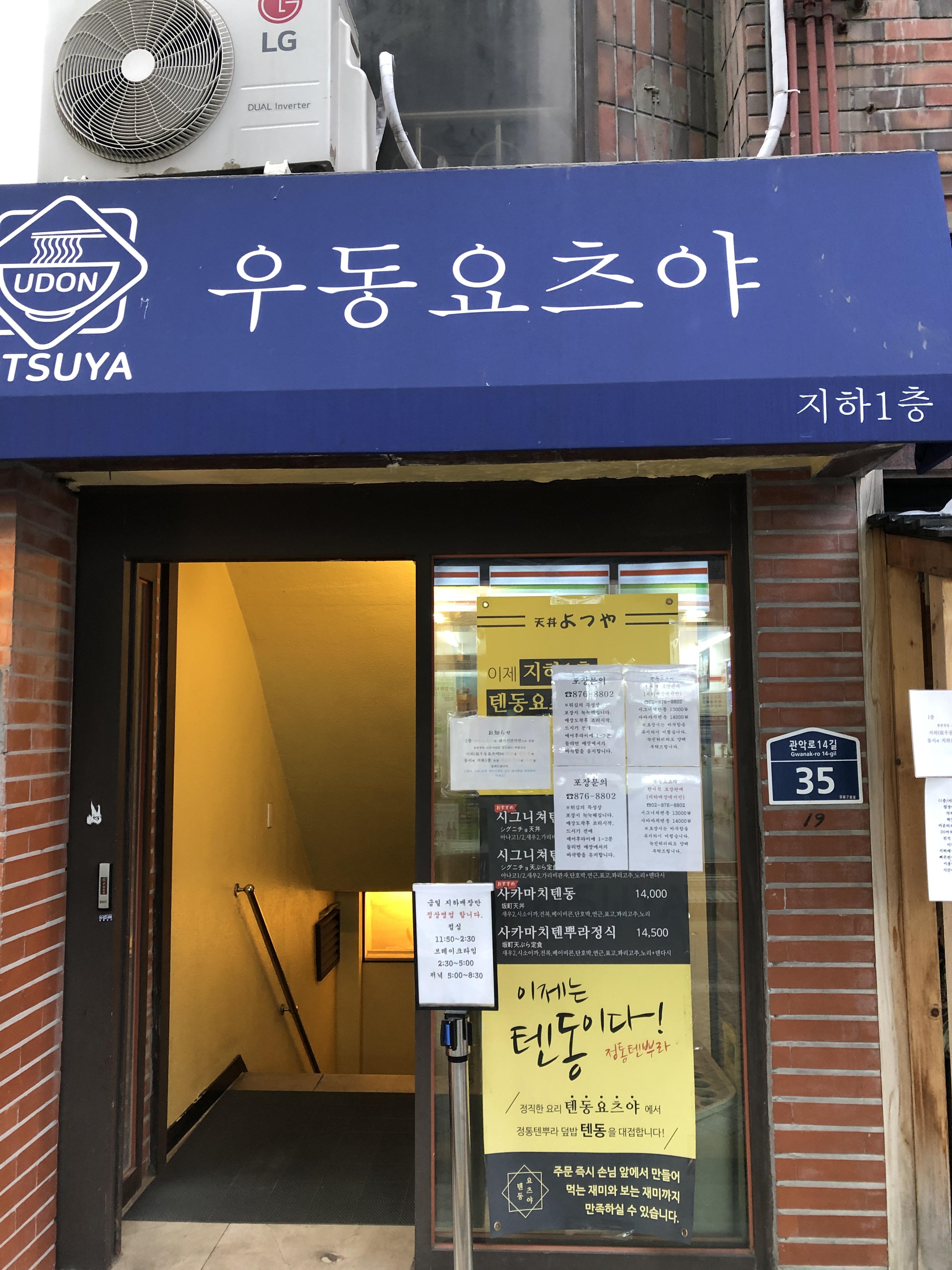 우동요츠야를 다녀왔습니다. 월요일이 휴일이라는 소문이 무색하게, 월요일에 지하는 영업하고 있었습니다. 전체적으로 일본 느낌을 벤치마킹하려는 점이 인상적이었으며, 한국인 입맛에 맞게 바꾼 텐동이 좋았습니다.