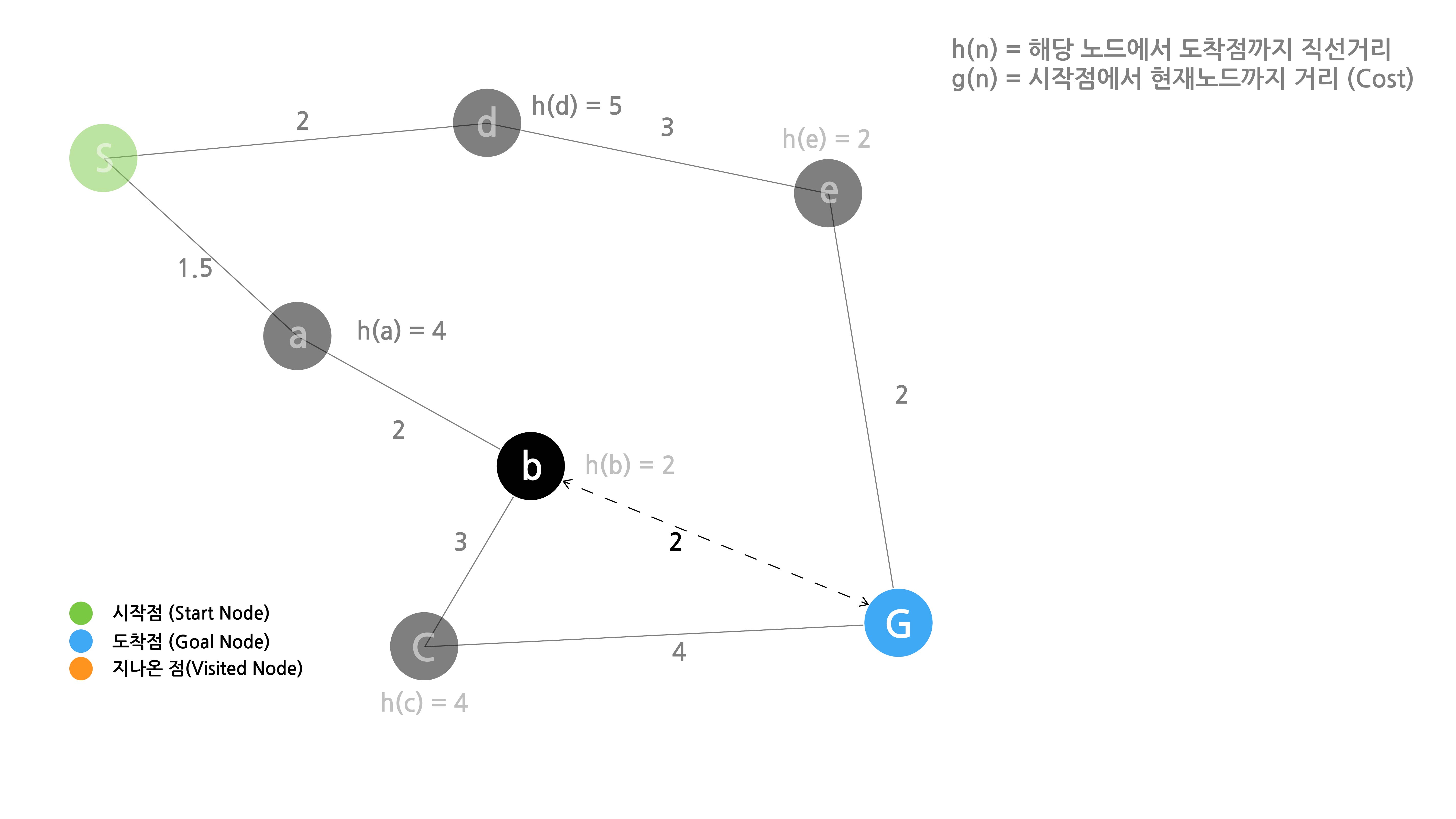 이 경우에도 $f(b)$가 더 작기 때문에 b노드를 선택합니다.