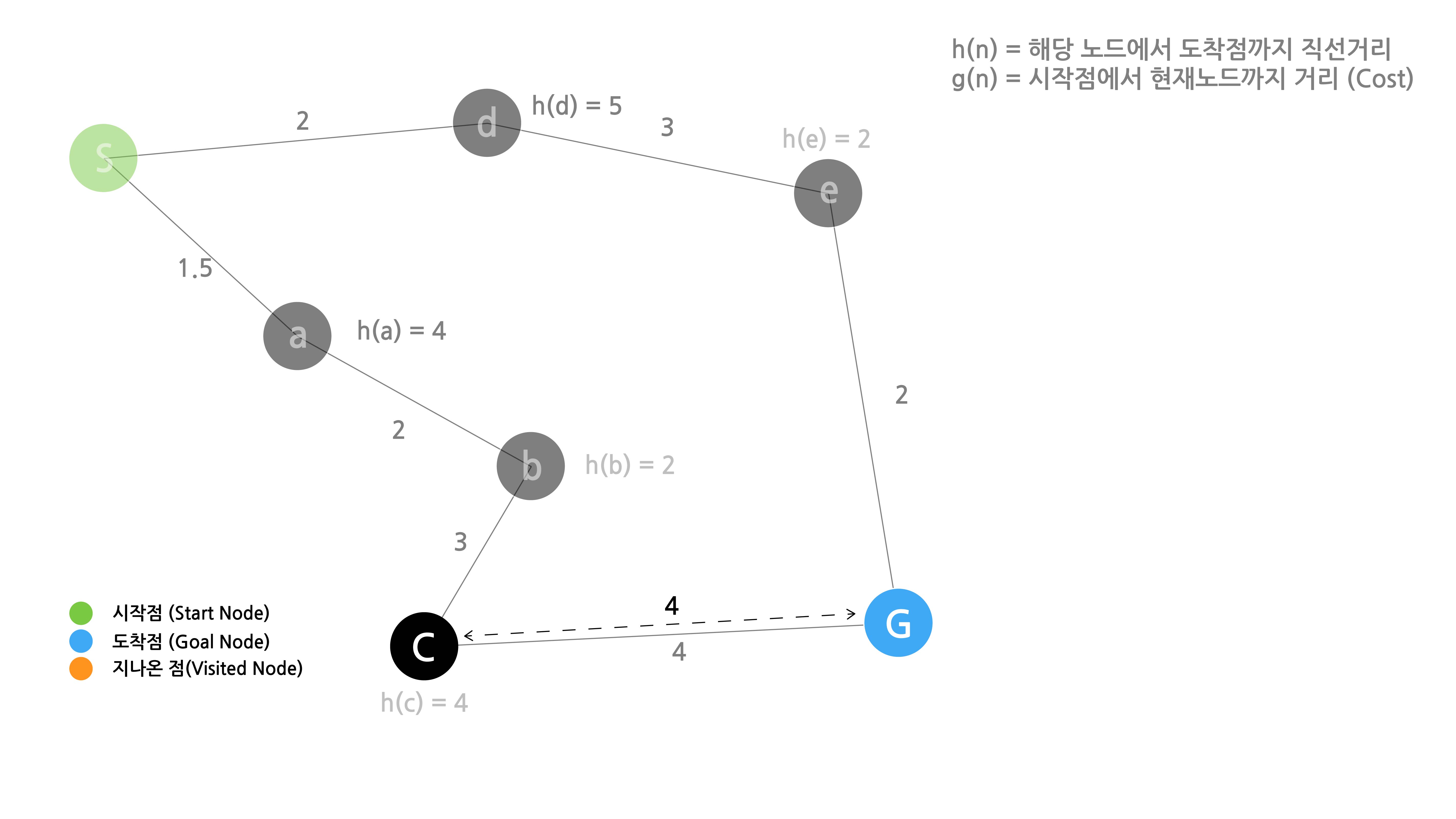 위와같은 도로 사정을 가진다면 당연히 $f(n) \neq cost$ 의 조건이 될 것입니다.