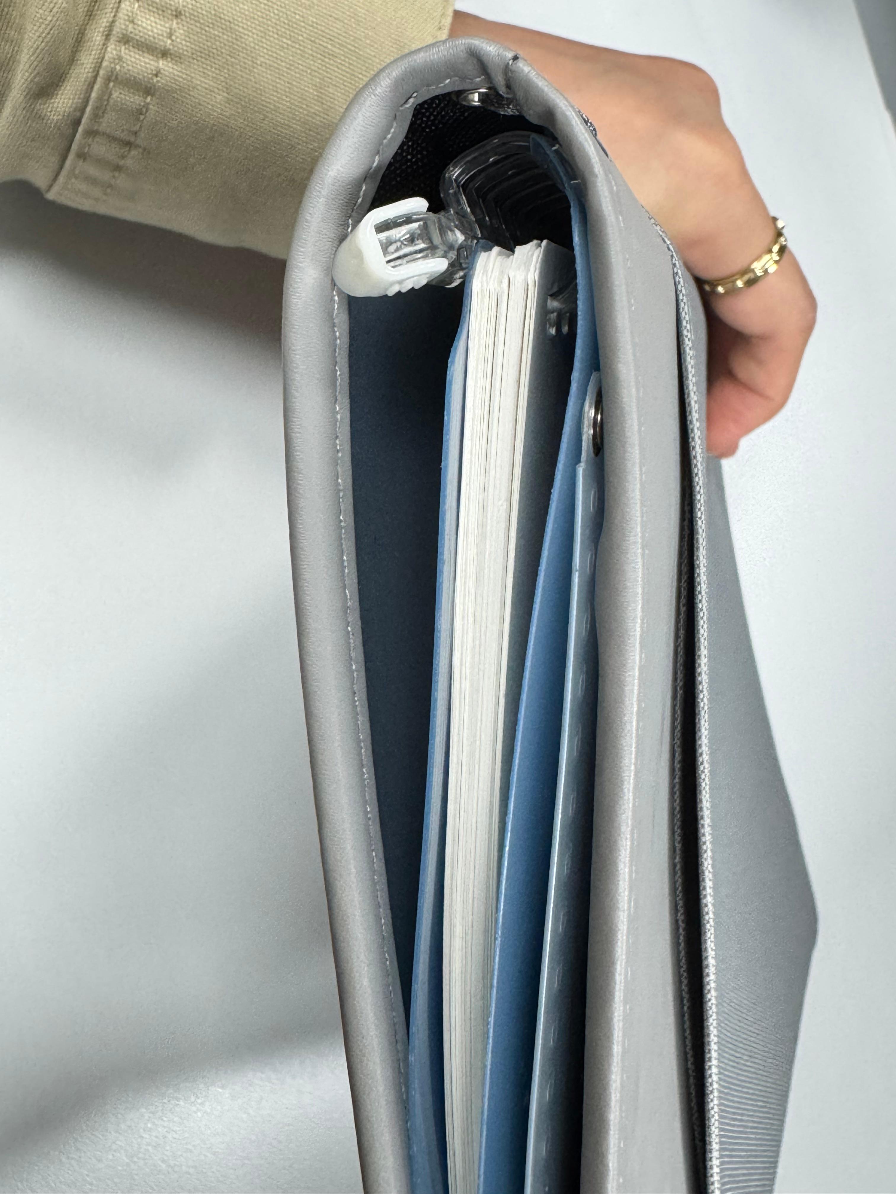 60~70매 정도의 노트는 무난하게, 100매 이상은 조금 두툼하지만 수납이 가능합니다.