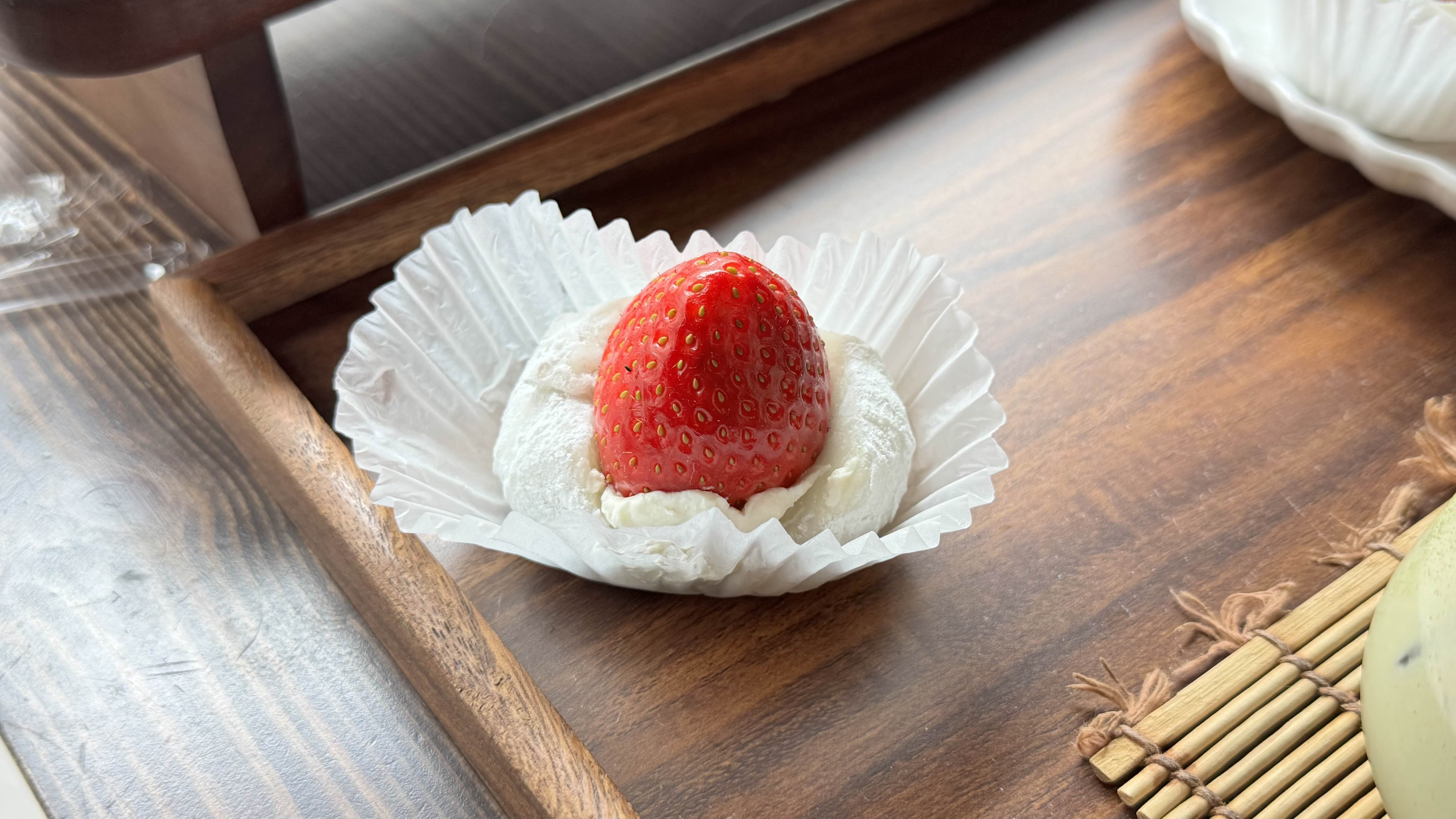 새하얀 떡 속에 붉은 딸기가 박힌 모습은 "전국 3번째"의 내공을 보여줍니다. 먹다 보면 하얀 가루가 손에 조금 묻어나긴 하지만, 쫄깃한 떡과 과즙 터지는 딸기의 상큼함 앞에선 그마저도 즐거운 경험이 됩니다.