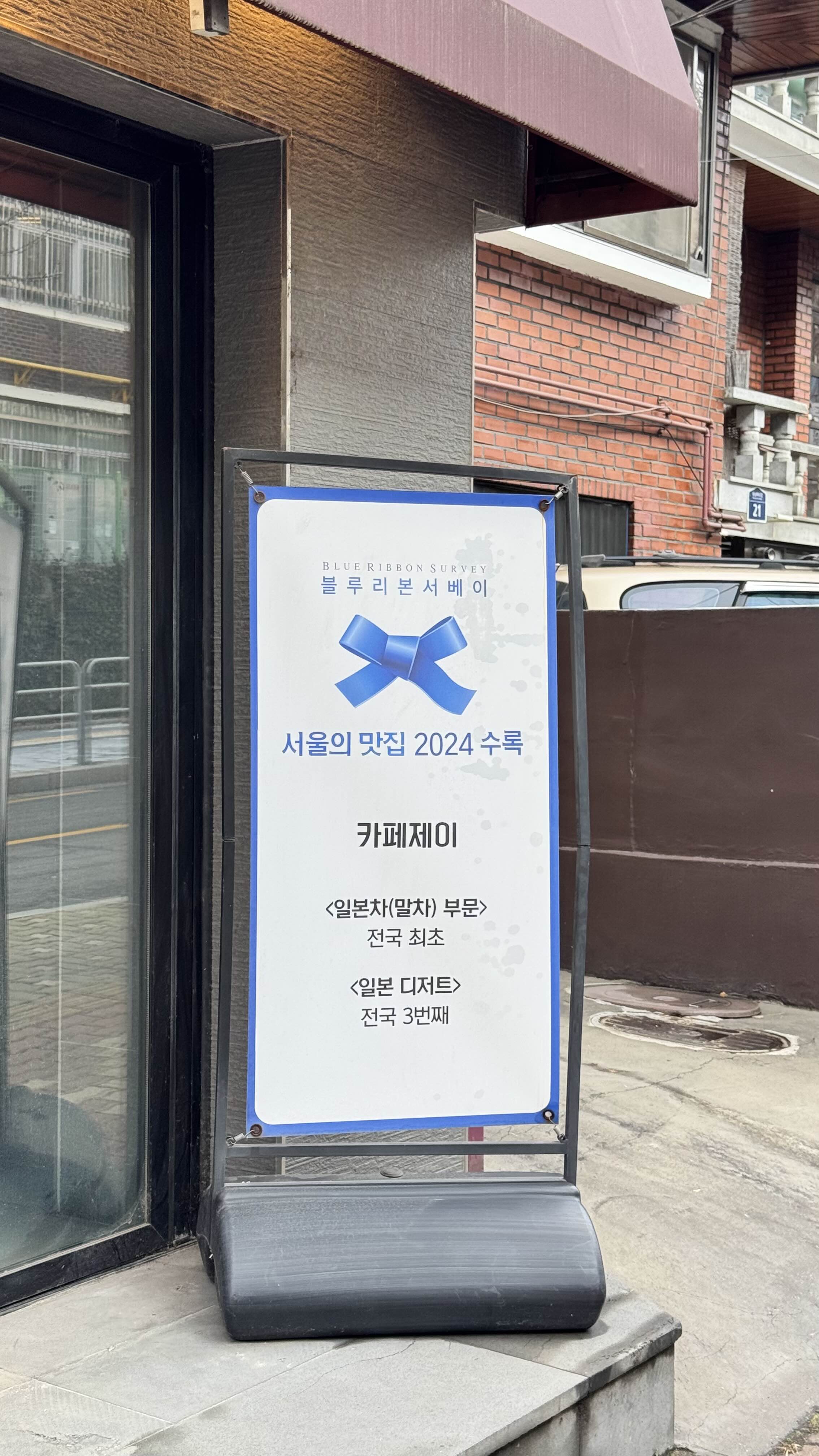 입구에 놓인 블루리본을 통해 이 가게가 얼마나 인정받았는지 알 수 있습니다.