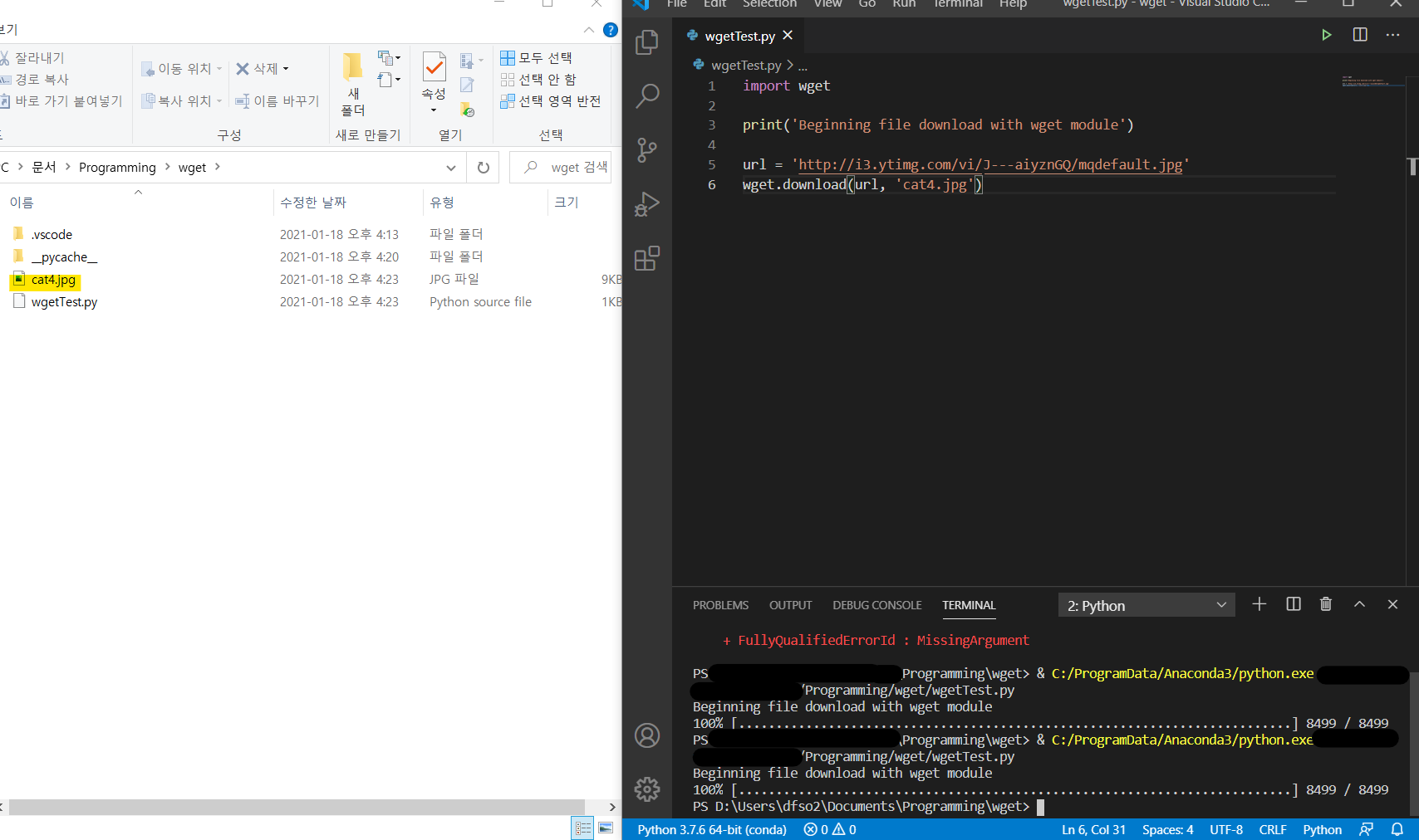 위의 폴더 구조는 Programming -> wget -> wgetTest.py로 되어 있습니다. 그래서 현재 위치는 Programming -> wget 입니다. 프로젝트 특성에 따라서 현재 실행되는 파일을 기준으로 그 하나 위 또는 아래등등의 위치를 지정해줘야 하는 경우가 있습니다. Linux의 vim를 이용하면 미치도록 많이 사용할 수 있던데, 한번 응용해보고 싶었습니다.