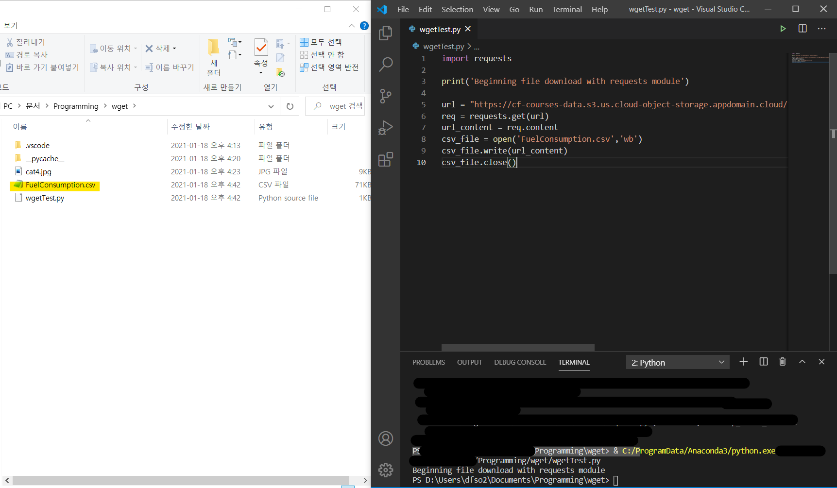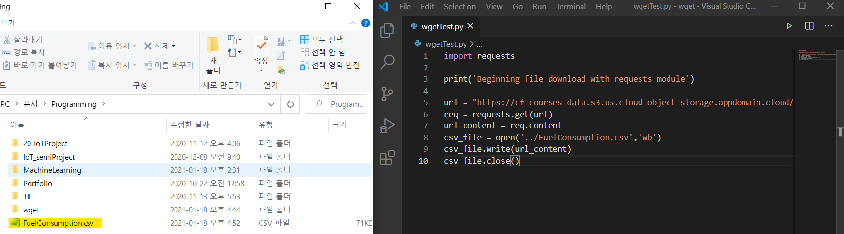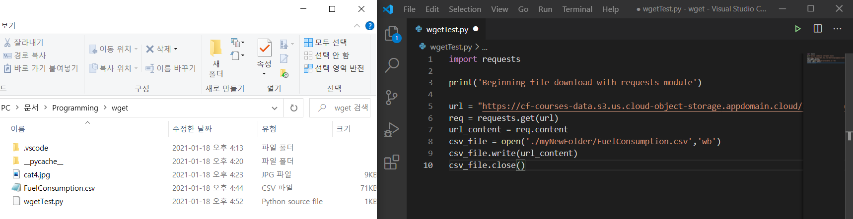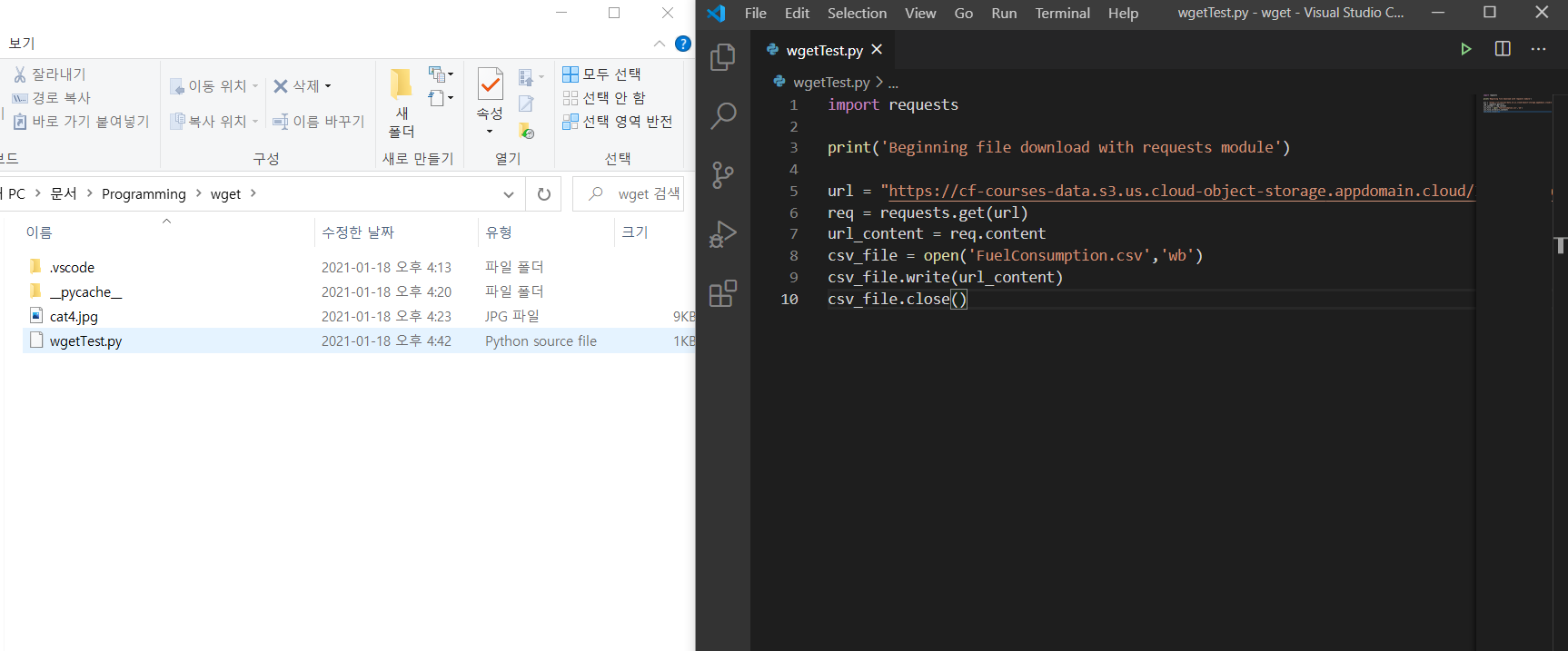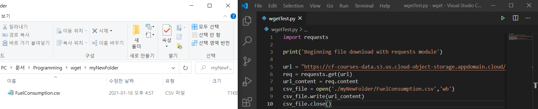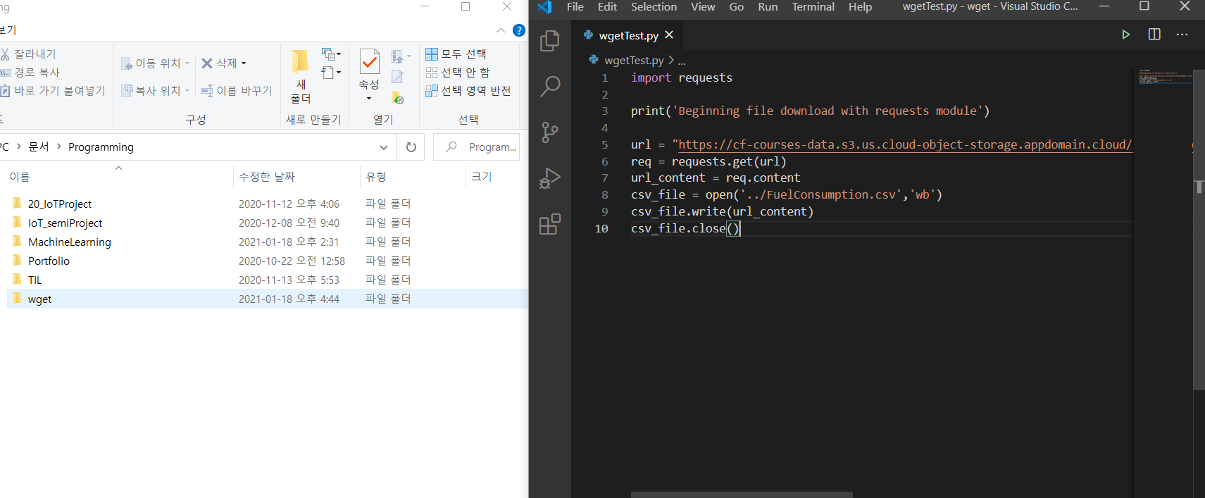 요즘 배우는 머신러닝 예제 중, wget을 이용해서 csv를 다운로드 받아야 하는 부분이 있었습니다. 그래서 우선 wget을 이용해 보기로 했습니다.