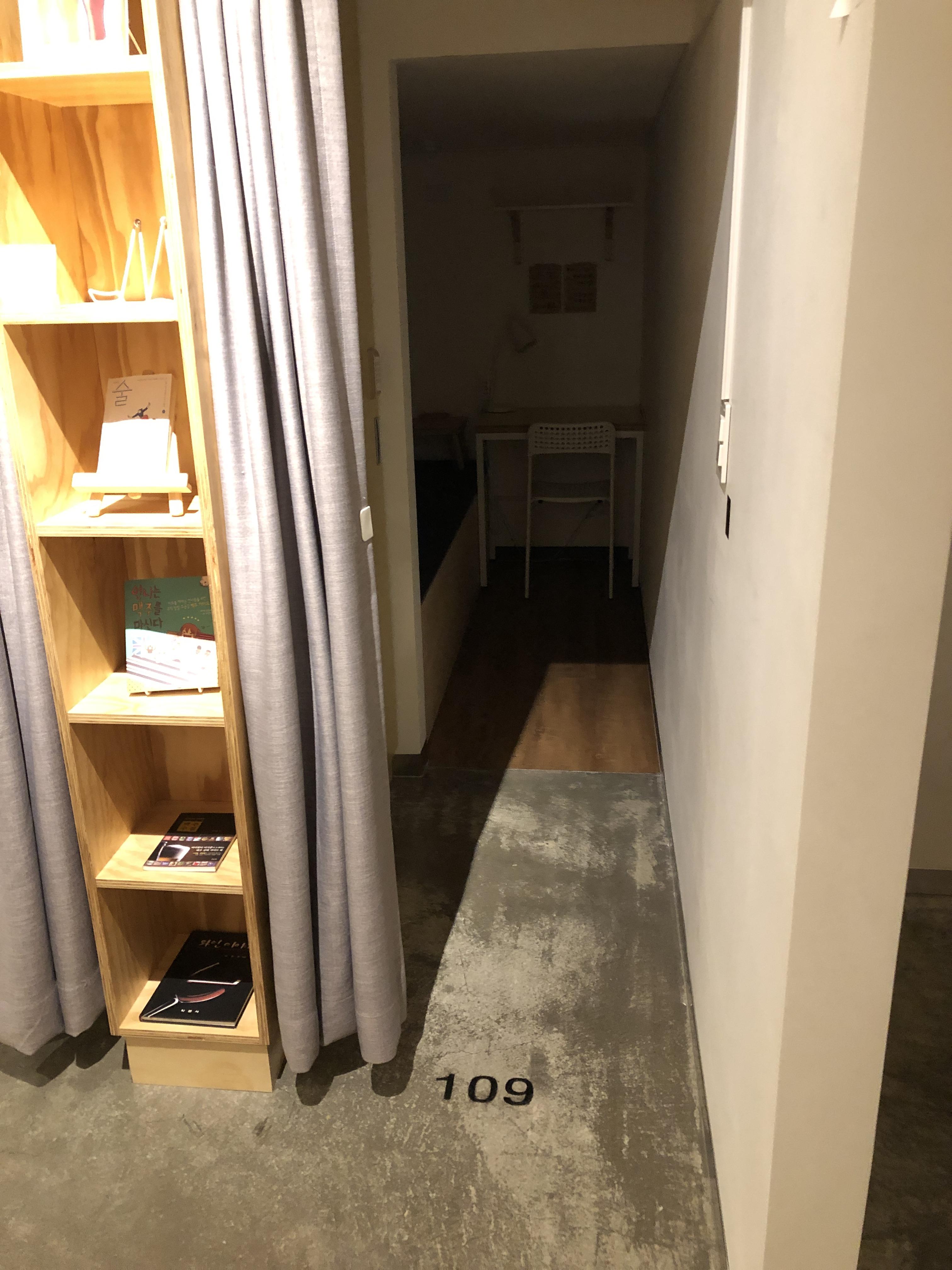 여긴 프라이빗 룸이 있었습니다. 이건 흡사 고시방과 같은 느낌으로 안으로 쭉 들어가면 아주 작은 책상과 옆에 침대가 있었습니다. 저는 돈 안내고 이런거 들어가길 잘 못하는 쫄보라 많이는 못찍었습니다. 제가 갔던 날엔 자리도 듬성듬성 하고 분위기도 전체적으로 조용한 편이라 굳이 저기를 들어갈 필요가 있을까 싶었습니다.