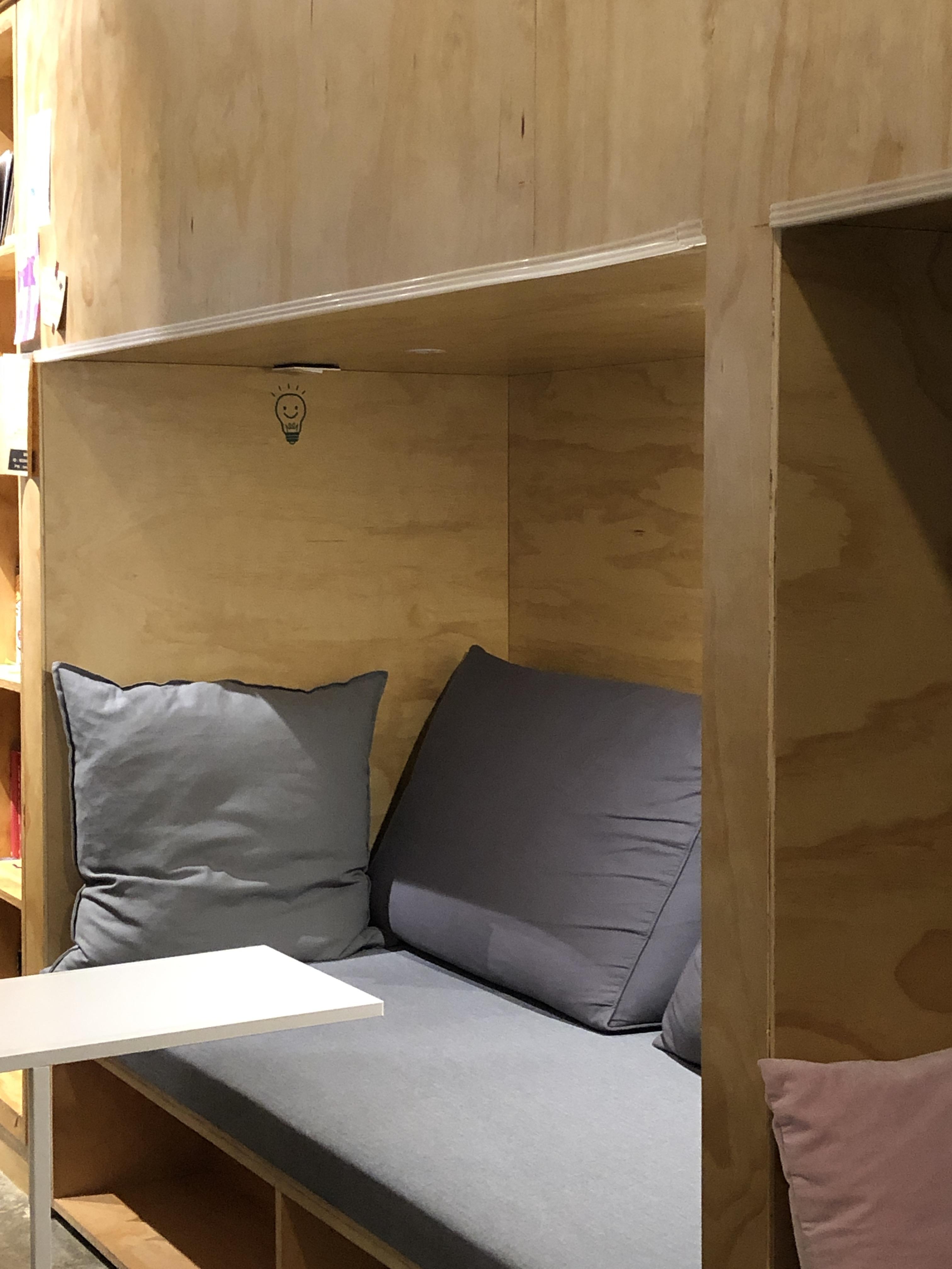 이 곳의 컨셉을 충실하게 만들어줄 휴식공간들 입니다. 하나는 제가 공부했던 공부공간 2와 3에 걸쳐있는 아래는 소파 위는 2층 침대 같은 곳에 있습니다. 호기심 많은 어른이나, 아래 내려다 보기 좋아하시는 분들이 가면 좋을것 같습니다.