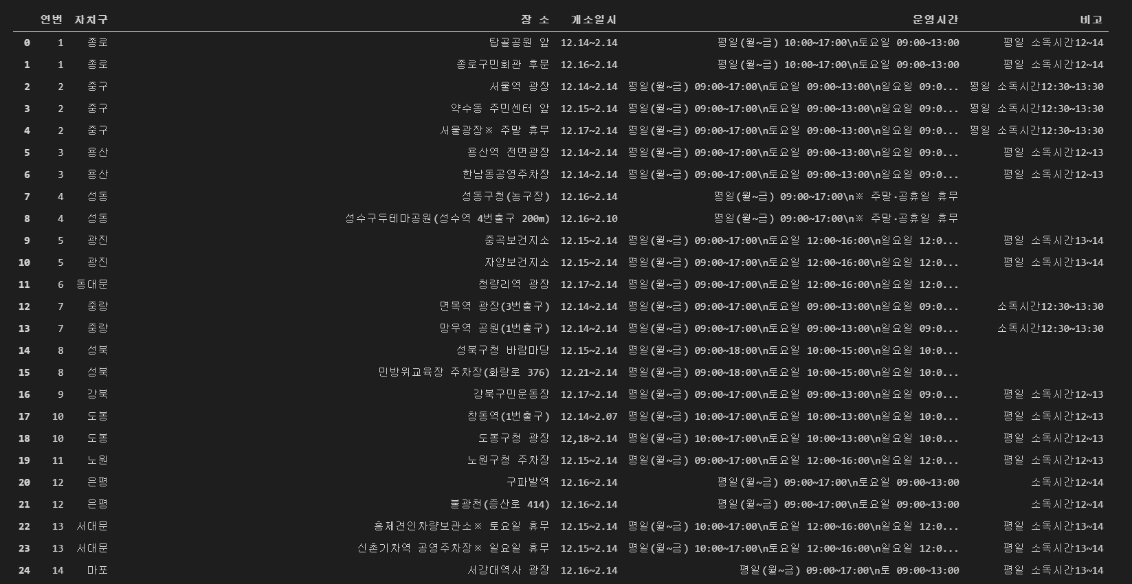 실제데이터로 해보기 : 서울시 임시선별검사소 운영 현황