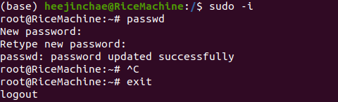 (base) heejinchae@RiceMachine:/$ sudo -i