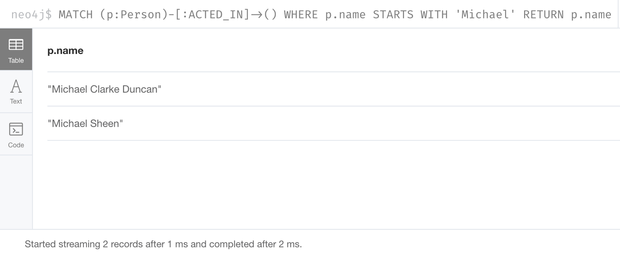 WHERE toLower(p.name) STARTS WITH 'michael'