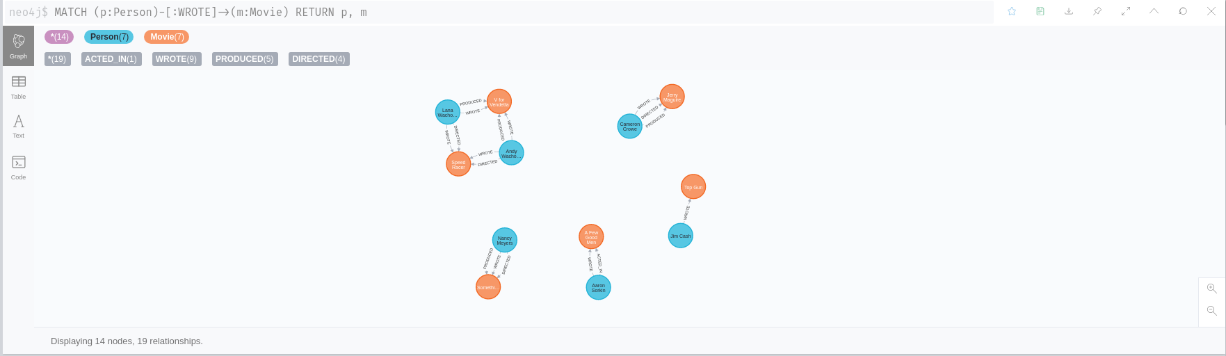 MATCH 부분에서 어떤 영화를 쓴 사람을 Query하도록 되어있다. 하지만, p에서 m노드로 WROTE이 외의 관계도 존재할 수 있다.