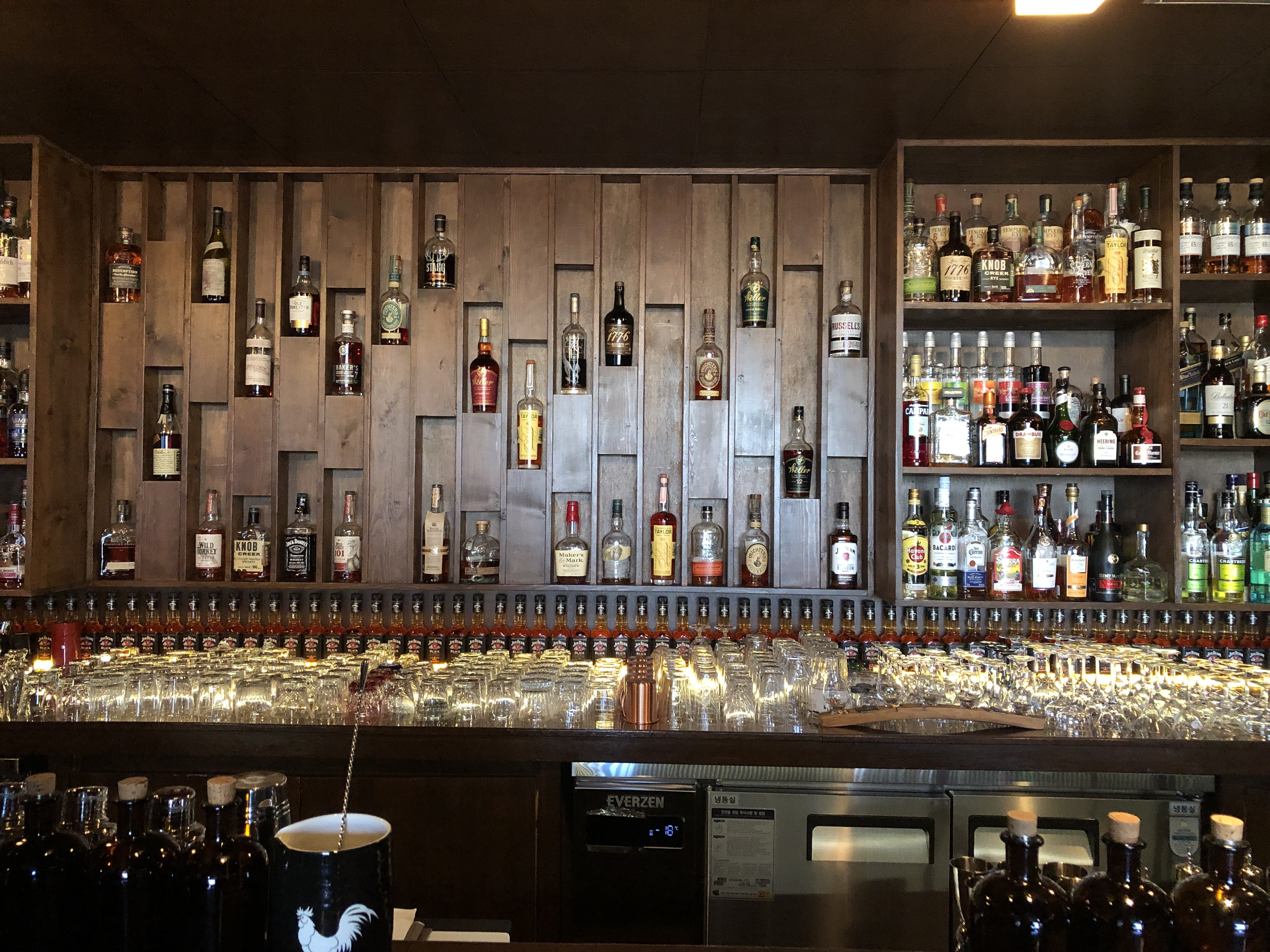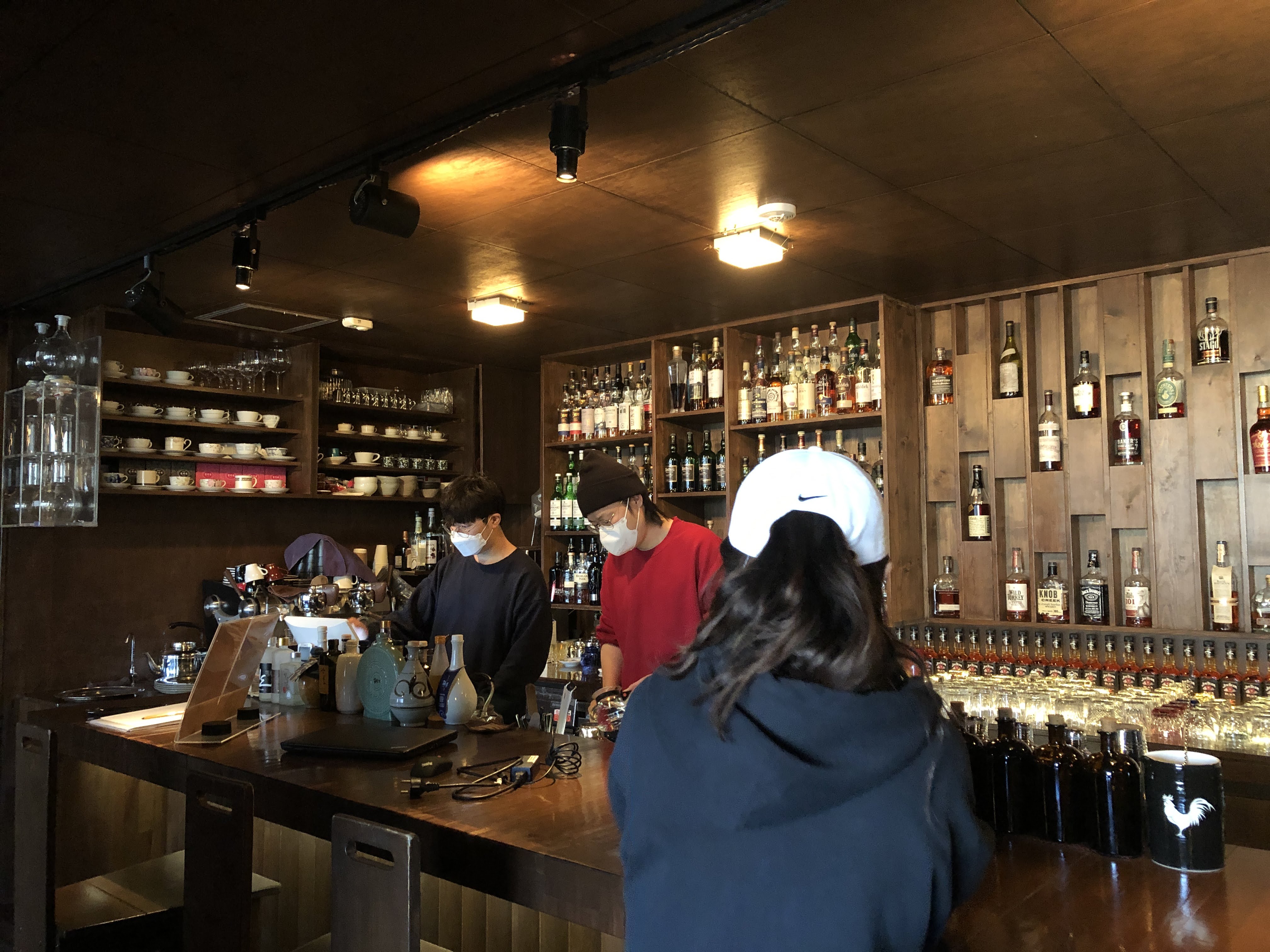 내부분위기는 뭐에 비유를 해야할까요. 바 부분을 바라보고 있으면 하나의 아이리쉬 펍에 온거 같은 느낌이고, 테이블 쪽은 왠지 모르게 북유럽 같다는 느낌이 들었습니다. 전체적으로 목재의 따뜻한 느낌이 들면서도 그 목재들이 조금 좋은 나무를 쓴 느낌이 나서 고급져 보였습니다. 만약 코로나가 아니라면 연말에 모임을 가진다면 정말 좋을거 같다는 생각이 들었습니다.