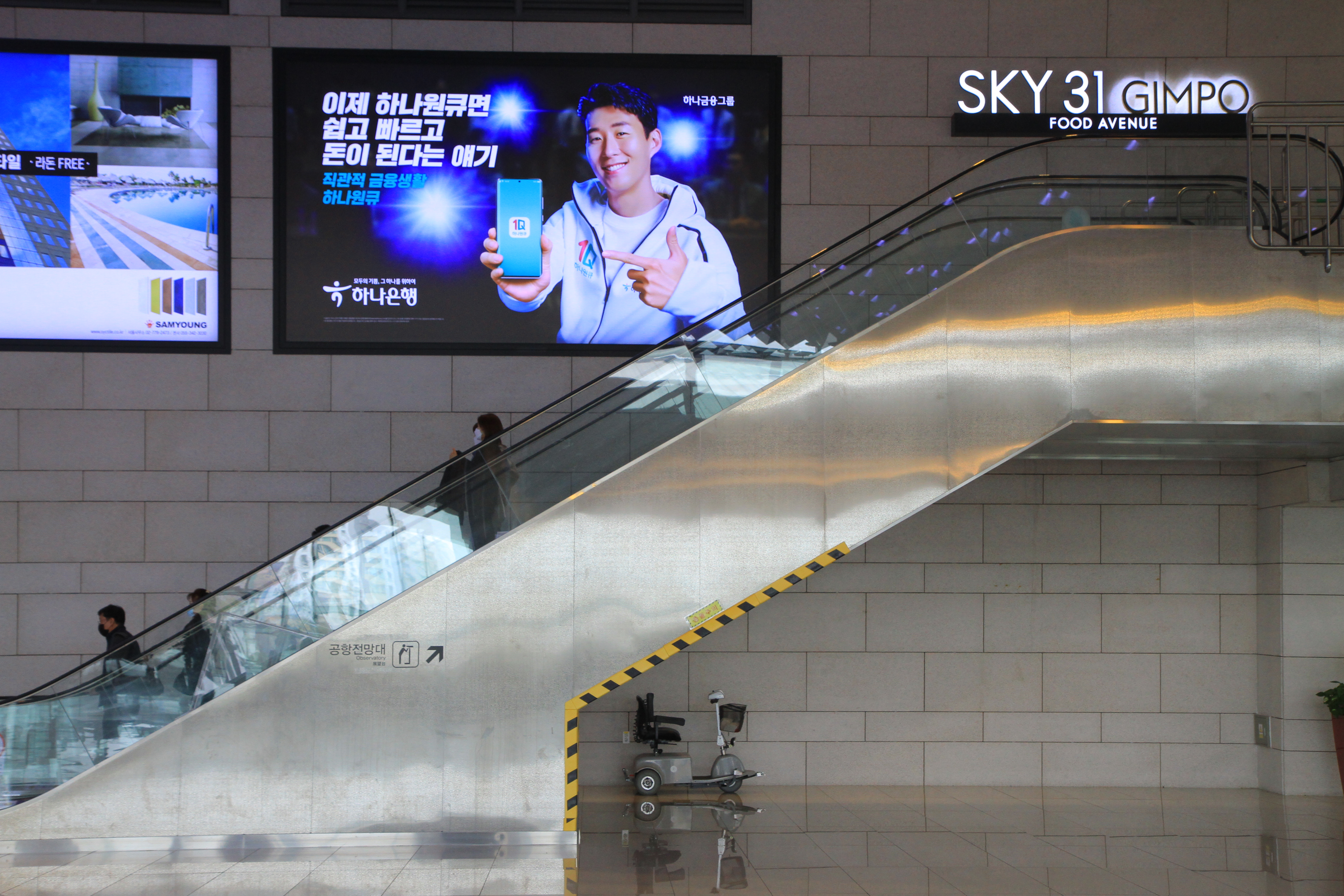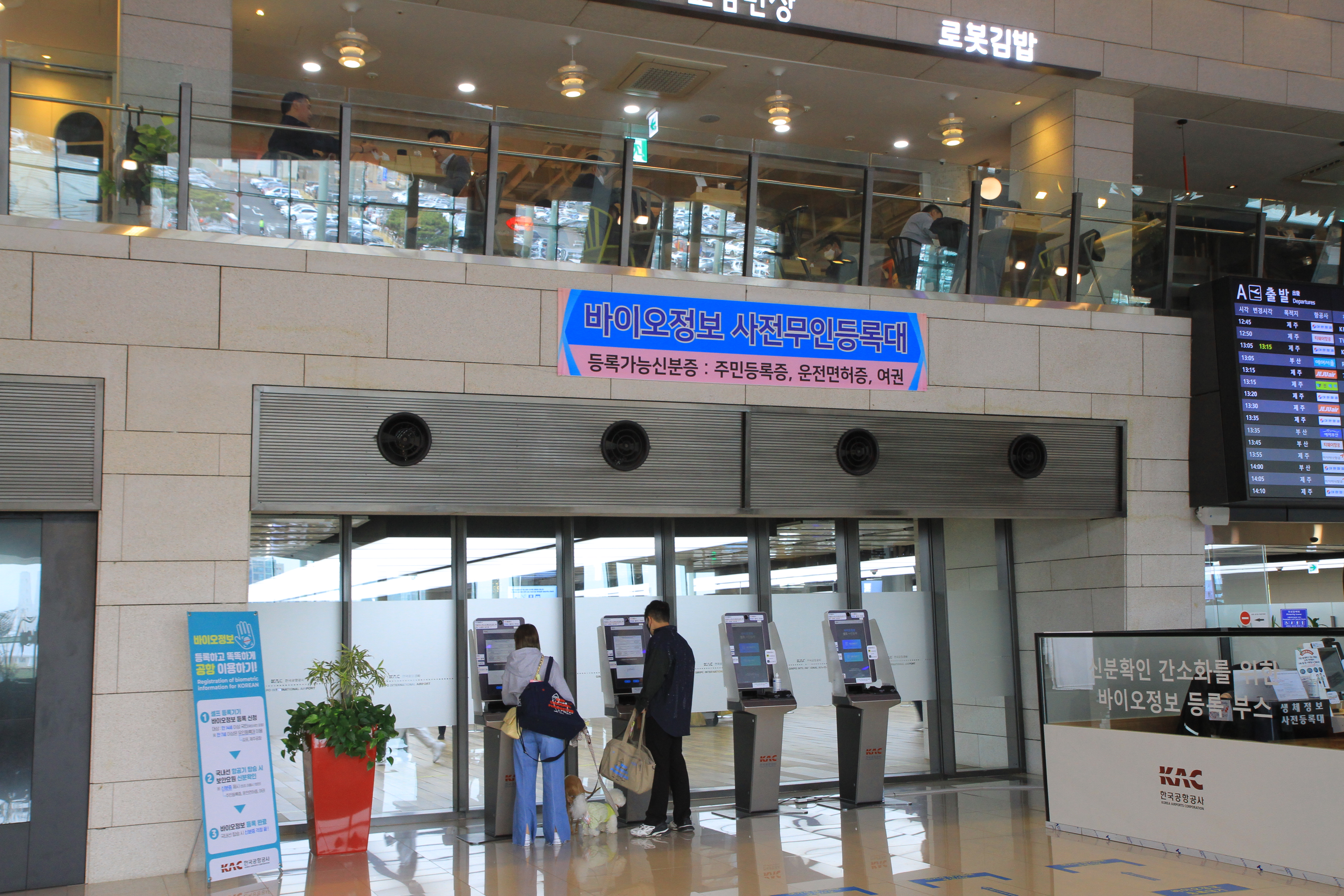 국내선용 바이오정보 사전무인등록대도 에스컬레이터 주변에 있었습니다.
